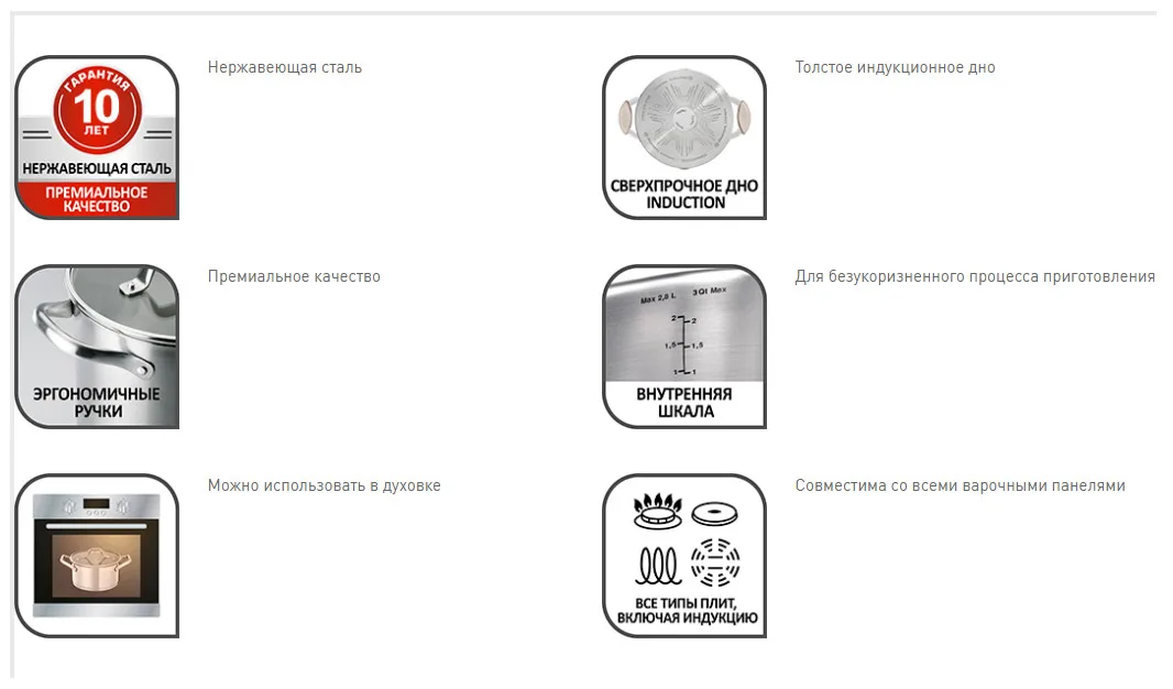 Лучший сплав 18/10 из нержавеющей стали для длительной службы. Лучшая производственная экспертиза для повышенной устойчивости к коррозии. Превосходный дизайн для максимальной долговечности, комфорта в использовании и удовольствия от приготовления