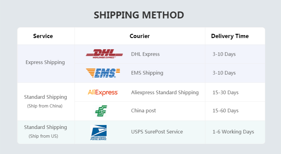 7. Из-за наличия на складе и разницы во времени, мы выберем доставку Вашего товара с нашего первого доступного склада для быстрой доставки.