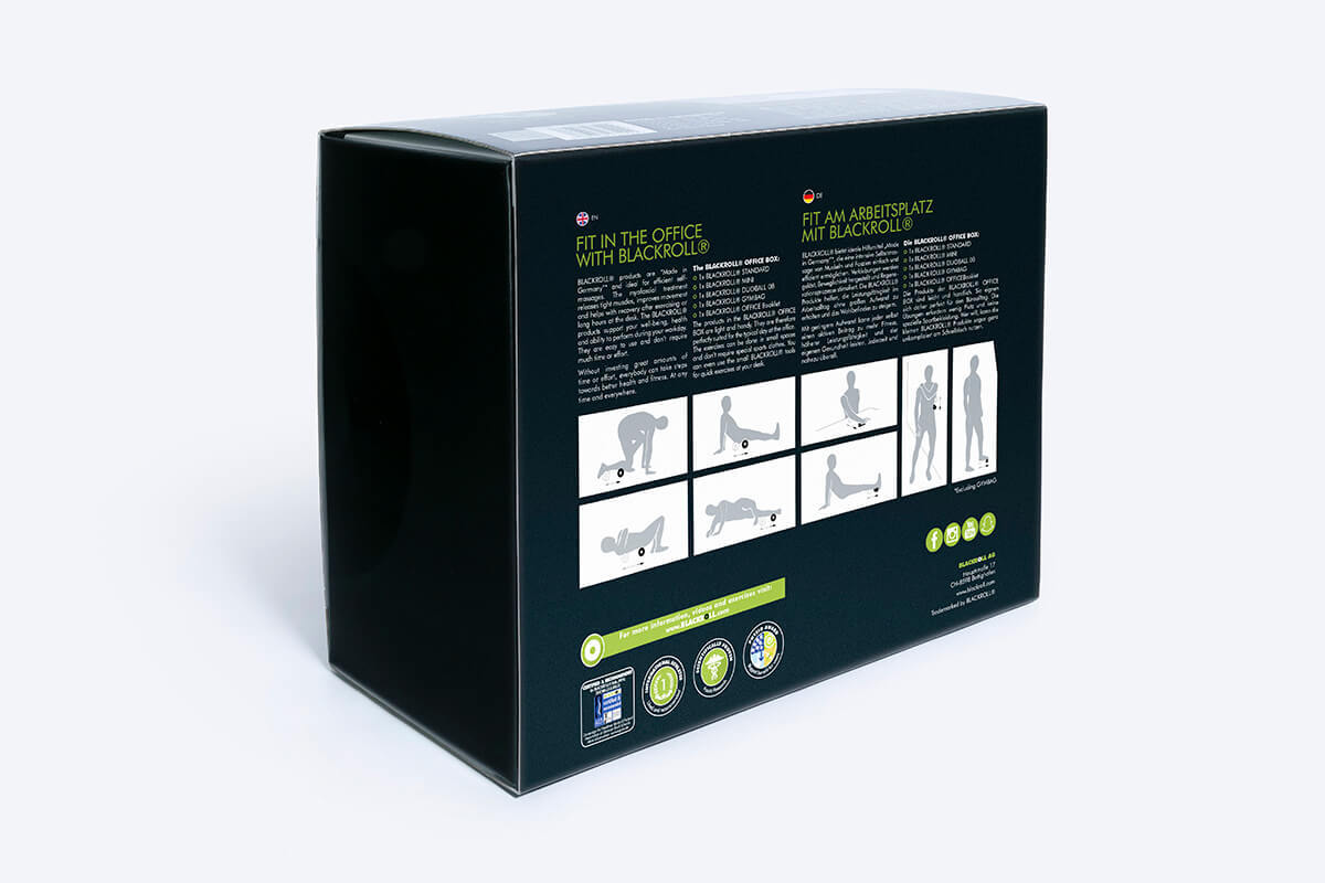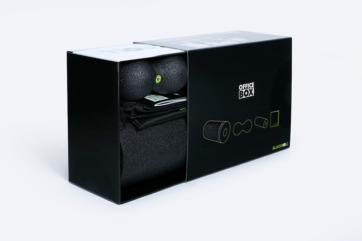 Революционного дизайн FLOW: плавная прокатка в одном направлении и активная стимуляция в другом. Средний уровень жесткости. Оказывает глубокий массажный эффект. Подходит для любого вида тренировок или массажа. Рекомендуется использовать людям со средним и высоким болевыми порогами для занятий спортом и в терапевтических целях. Массажный набор BLACKROLL® OFFICE BOX Самомассаж с оборудованием BLACKROLL® способствует уменьшению мышечной боли, увлажнению фасции (специальная оболочка из соединительной ткани, окружающая мышцы), а также выполняет профилактику типичных спортивных травм. Регулярное выполнение самомассажа помогает сохранять гибкость мышц, стимулирует кровообращение и способствует удалению из мышц молочной кислоты. Перед применением рекомендуется проконсультироваться с физио- или мануальным терапевтом. В массажном наборе BLACKROLL® OFFICE BOX собрано самое популярное оборудование по привлекательной цене для использования в офисе: Массажный ролл стандарт BLACKROLL® STD 30 см – базовый инструмент для самомассажа Массажный мини-ролл BLACKROLL® MINI 15 см – идеально подходит для проработки подошвенной фасции и ахиллова сухожилия Массажный мяч двойной BLACKROLL® DUOBALL 8 см – разработаны специально для массажа мышц, расположенных вдоль позвоночного столба Рюкзак BLACKROLL® GYMBAG для удобного хранения BLACKROLL® OFFICE BOX поможет повысить вашу производительность и улучшить самочувствие без больших усилий. Состав набора BLACKROLL® OFFICE BOX: Массажный ролл стандарт BLACKROLL® STD 30 см Массажный мини-ролл BLACKROLL® MINI 15 см Массажный мяч двойной BLACKROLL® DUOBALL 8 см Рюкзак BLACKROLL® GYMBAG Характеристики: Размер: 30 см x 15 см x 25 см Вес: 750 гр Состав: 100% полипропилен (РР5) Свойства BLACKROLL: Без запаха Водостойкий Легко очищается от загрязнений Может подвергаться санитарной обработке Продукция BLACKROLL®: Является юридически защищенным продуктом Имеет сертификат качества ассоциации здоровой спины AGR (Aktion Gesunder Rücken) Производится в соответствии с требованиям международного стандарта DIN ISO 9001:2000 Не содержит вредных химических веществ и безопасна для окружающей среды На 100% поддается переработке Сделано в Германии. Комплектация: Массажный набор BLACKROLL® OFFICE BOX