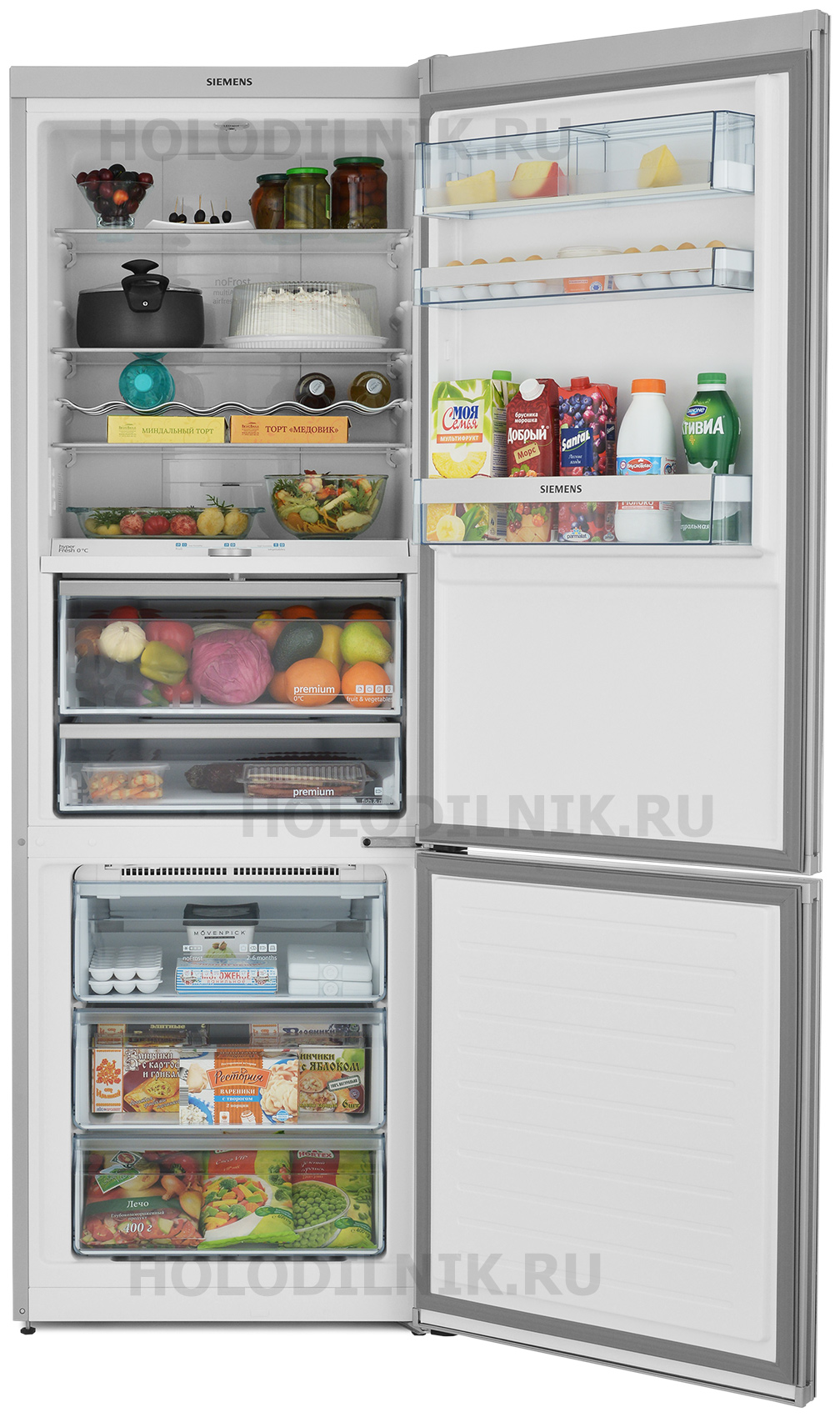 Продукты остаются свежими до 3 раз дольше в герметичной зоне свежести hyperFresh premium 0С: в отделении для овощей и фруктов переключателем можно регулировать влажность, а в отделении для мяса и рыбы - на дисплее регулировать температуру.