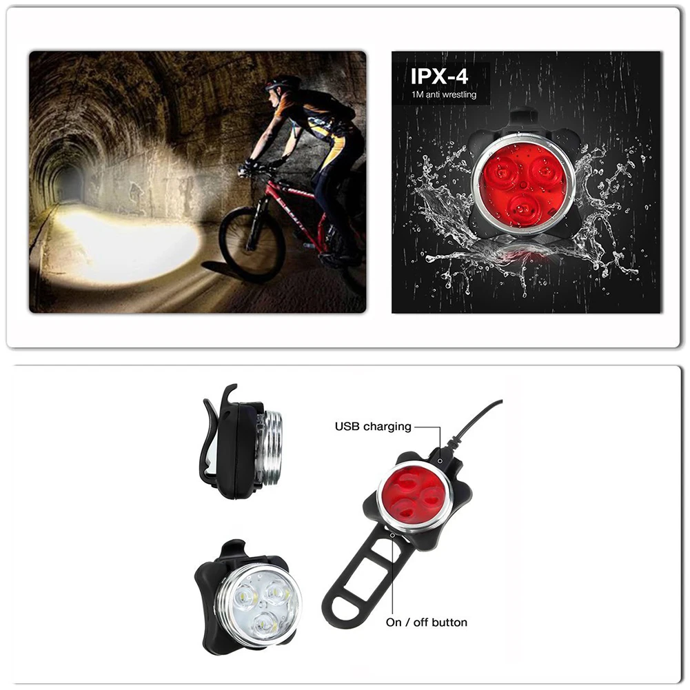 Велосипед USB Перезаряжаемые высокого светильник спереди и сзади светильник Безопасность Предупреждение лампы езда на велосипеде защитные аксессуары