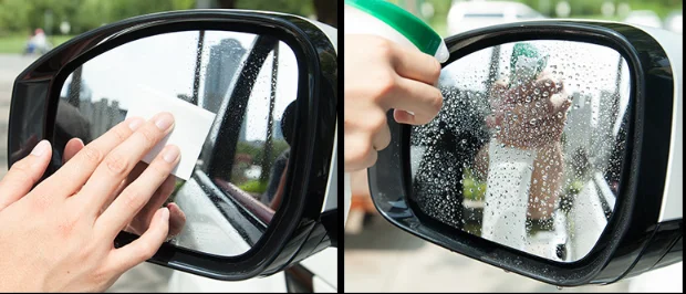 1. Протрите зеркало заднего вида спиртовым хлопком и равномерно распылите на зеркало.