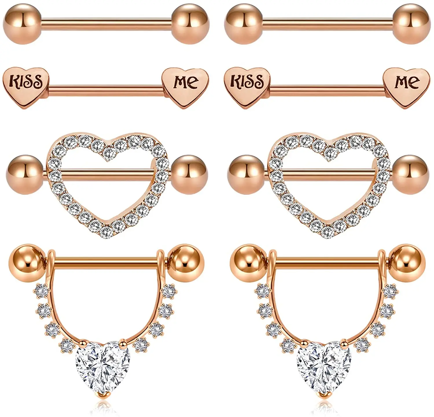 Тип пирсинга: каждая упаковка штанги для пирсинга включает 2 пары колец для языка, 2 пары колец для сосков