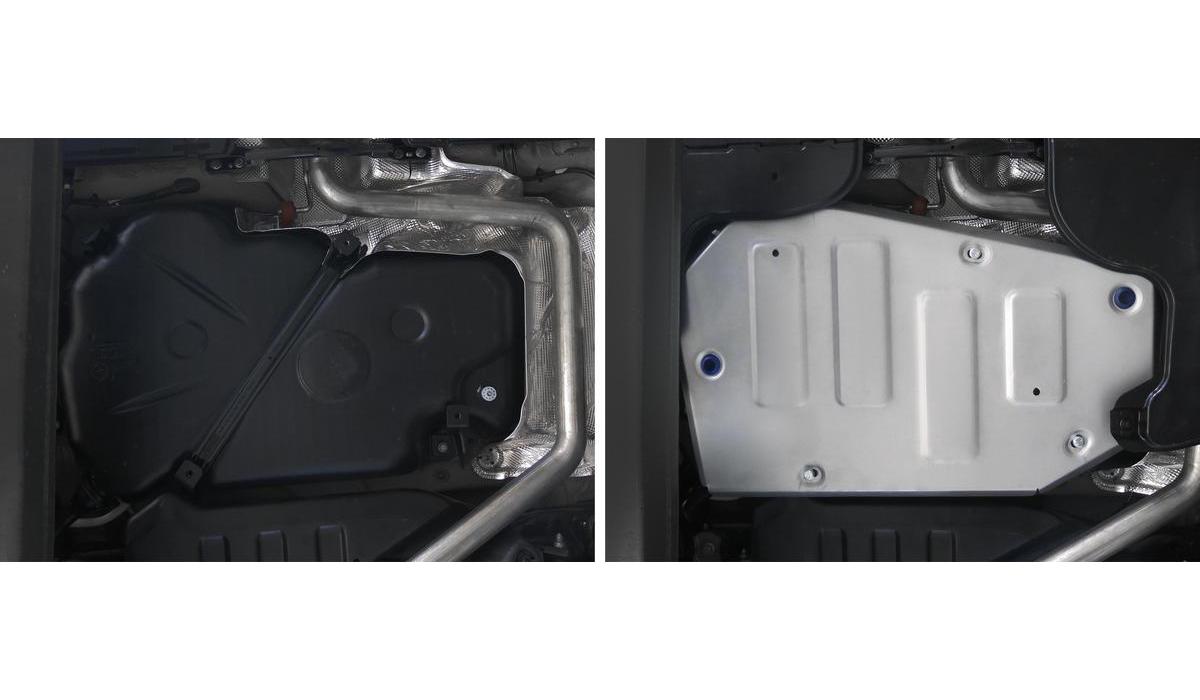 Защита топливного бака Rival подходит для: Skoda Kodiaq (V - 1.4 (125/150 л.с.)) FWD 2017-н.в. Volkswagen Tiguan II (V - 1.4 (125/150 л.с.)) FWD 2016-н.в. Материал - алюминий 3 мм. Штамповка - есть. Цвет - серый. Крепеж - в комплекте. Листов (частей) - 1. Артикул - 333.5121.1 Алюминиевые защиты Rival надежно защищают днище вашего автомобиля от повреждений, например при наезде на бордюры, а также выполняют эстетическую функцию при установке на высокие автомобили. - Толщина алюминиевых защит в 2 раза толще стальных, а вес при этом меньше до 30%. - Упаковка термоусадочная пленка. - Отлично отводит тепло от двигателя своей поверхностью, что спасает двигатель от перегрева в летний период или при высоких нагрузках. - В отличие от стальных, алюминиевые защиты не поддаются коррозии, что гарантирует срок службы защит более 5 лет. - Покрываются порошковой краской, что надолго сохраняет первоначальный вид новой защиты и защищает от гальванической коррозии. - Глубокий Штамп дополнительно усиливает конструкцию защиты. - Подштамповка в местах крепления защищает крепеж от срезания. - Помимо основной функции защиты от удара, конструкция так же существенно снижает попадание в моторный отсек влаги и грязи. - В комплекте инструкция по установке.