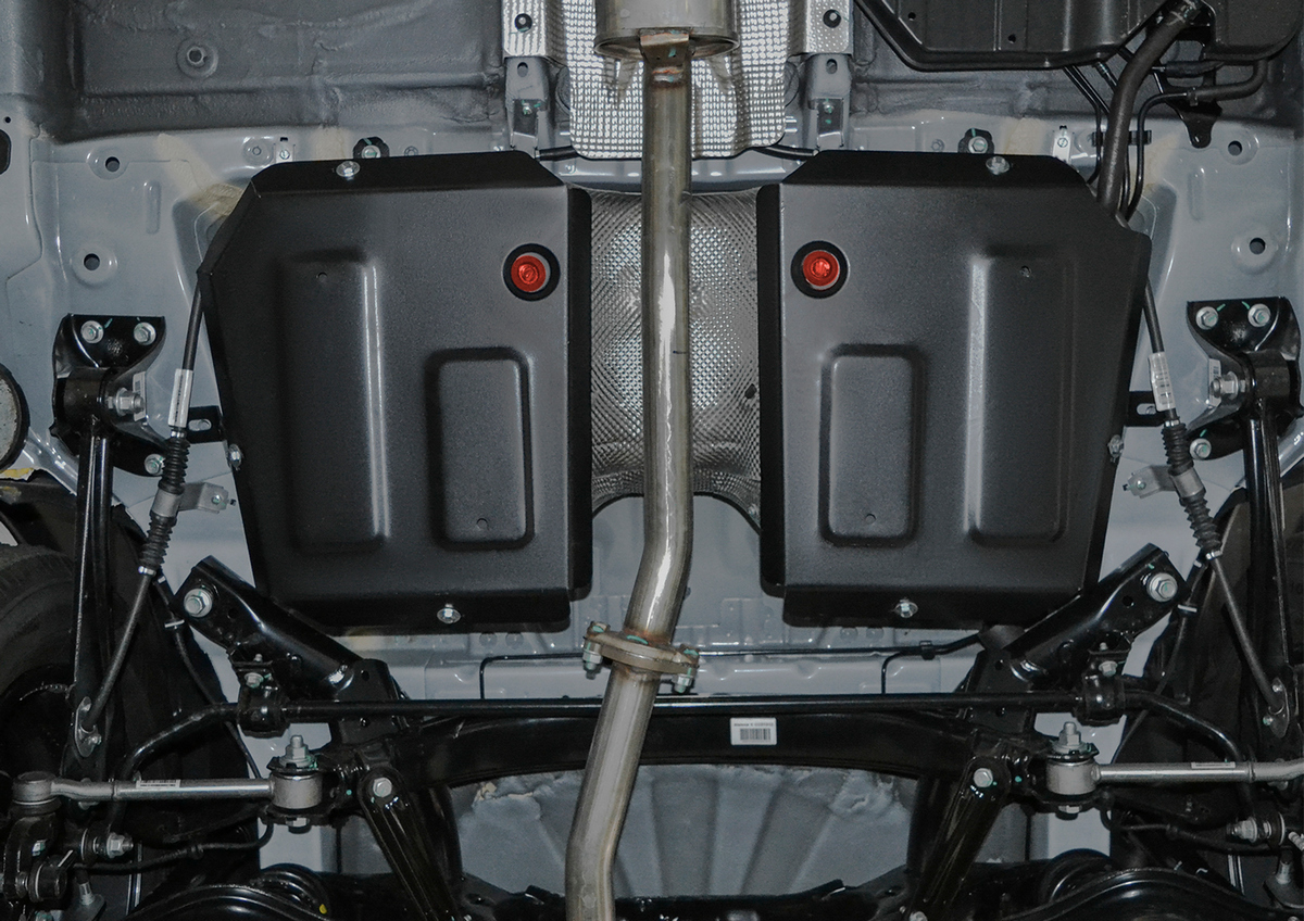 Защита топливного бака АвтоБроня подходит для: Geely Emgrand X7 I рестайлинг (V - 1.8; 2.0) 2018-н.в. Материал - сталь 1,8 мм. Штамповка - есть. Цвет - черный. Крепеж - в комплекте. Листов (частей) - 2. Артикул - 111.01919.1 Стальные защиты АвтоБроня надежно защищают ваш автомобиль от повреждений при наезде на бордюры, выступающие канализационные люки, кромки поврежденного асфальта или при ремонте дорог, не говоря уже о загородных дорогах. - Имеют оптимальное соотношение цена-качество. - Спроектированы с учетом особенностей автомобиля, что делает установку удобной. - Защита устанавливается в штатные места кузова автомобиля. - Является надежной защитой для важных элементов на протяжении долгих лет. - Глубокий штамп дополнительно усиливает конструкцию защиты. - Подштамповка в местах крепления защищает крепеж от срезания. - В комплекте инструкция по установке.