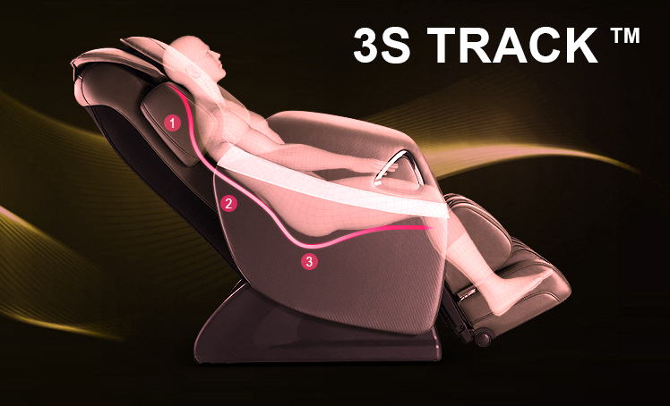 Это технология перемещения массажных роликов, который эргономически полностью соответствует изгибам тела человека. Тройной S-трек предназначен, чтобы еще лучше соответствовать S-образному строению позвоночника человека и служит достижению массажных роликов основных зон массажа (шеи, спины и копчика) с максимально точным воздействием.