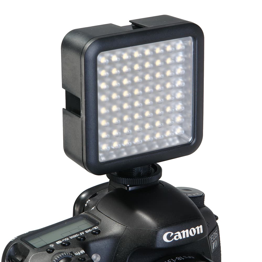 Накамерный осветитель Falcon Eyes LedPRO 64 предназначен для пилотного освещения съемочной сцены и представляет собой компактный, легкий и многофункциональный источник света. Благодаря поворотному кронштейну возможен поворот и смещение осветителя относительно крепления. 64 высококачественных светодиода обеспечивают мягкий, стабильный и яркий световой поток с цветовой температурой белого дневного света 5500К и высоким коэффициентом цветопередачи.