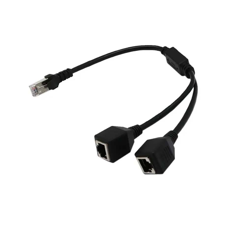 Два сетевых кабеля можно подключить к более длинному кабелю через этот сплиттер.