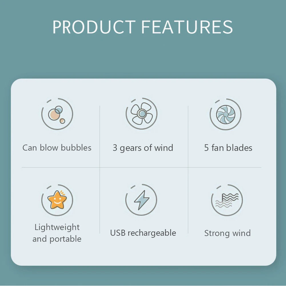 Дети Портативный USB Перезаряжаемый электрический ручной вентилятор охлаждения пузырчатая игрушка воздуходувка