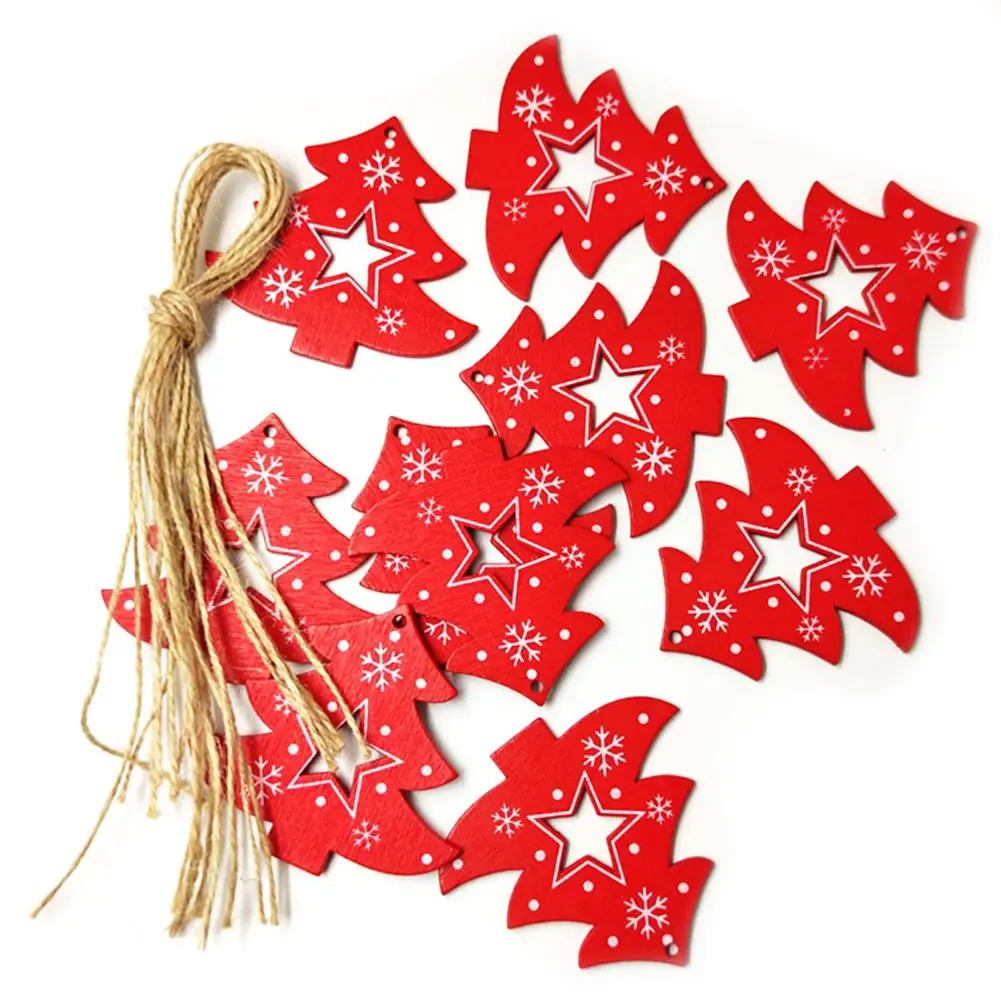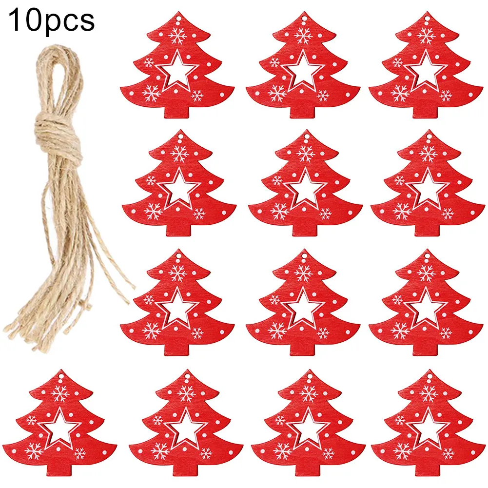 10 шт. Деревянная Рождественская елка с отверстиями звезда отверстие веревка подвесной кулон домашний декор