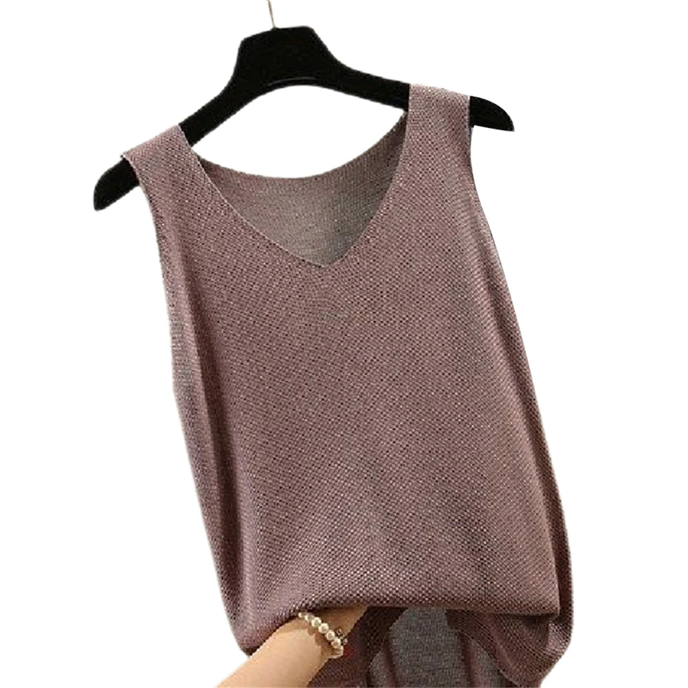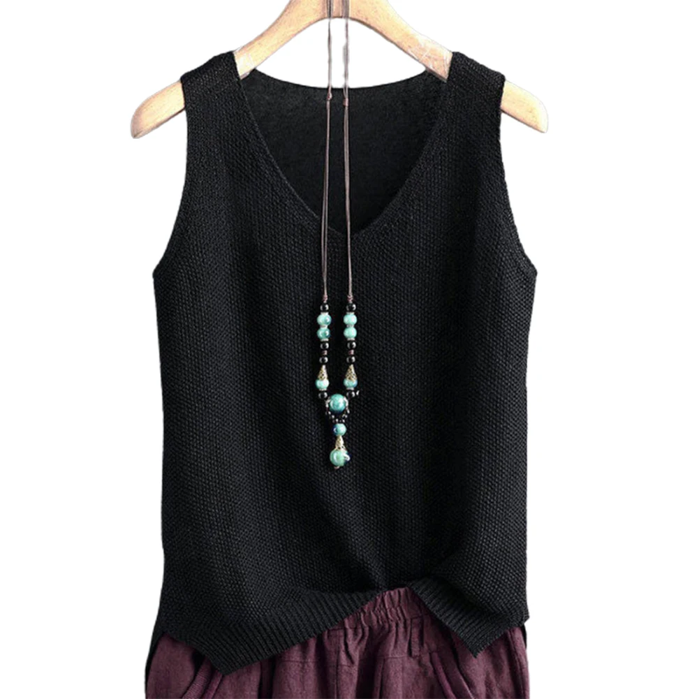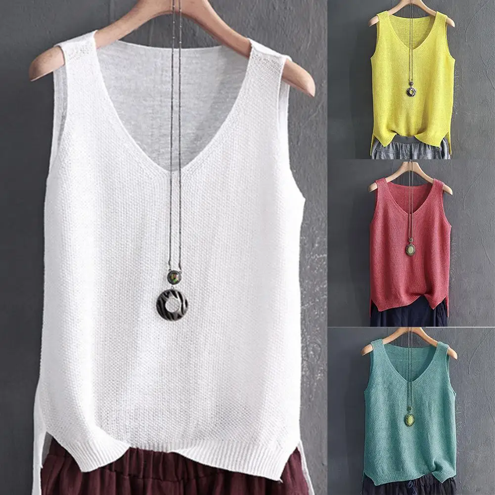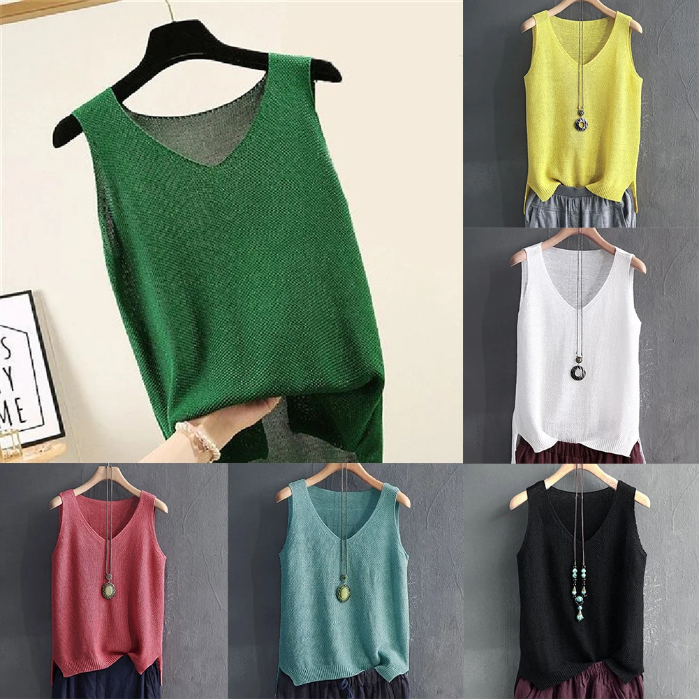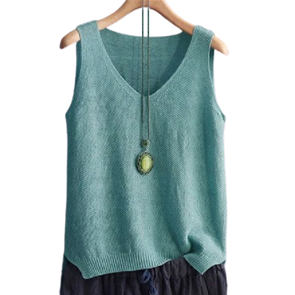 Повседневный Женский однотонный v-образный вырез без рукавов Вязанный жилет Свободная блузка Топ на бретелях