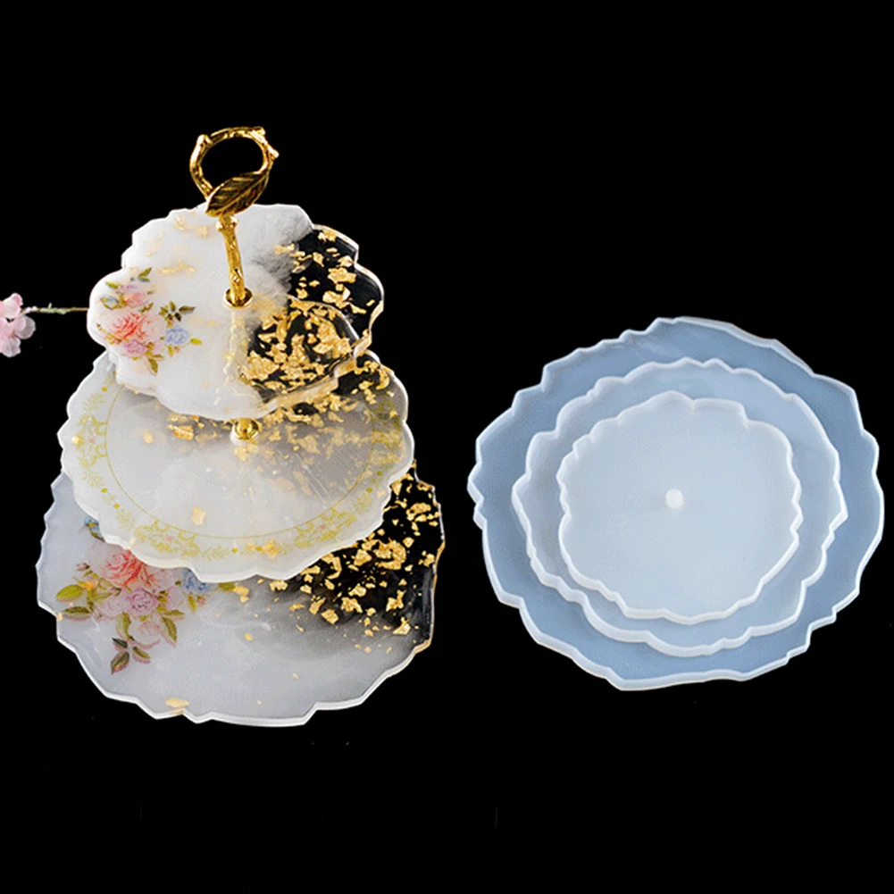 3 яруса кружевных нерегулярные блюдо Coaster DIY эпоксидная силиконовая пресс-форма для литья держатель подставка