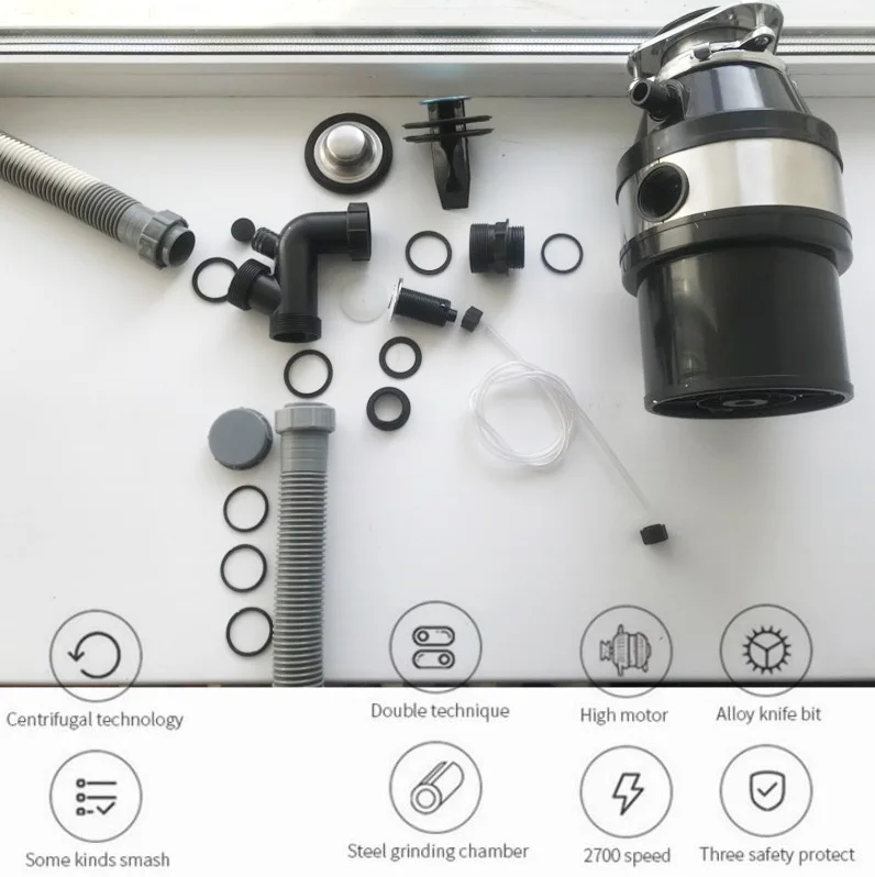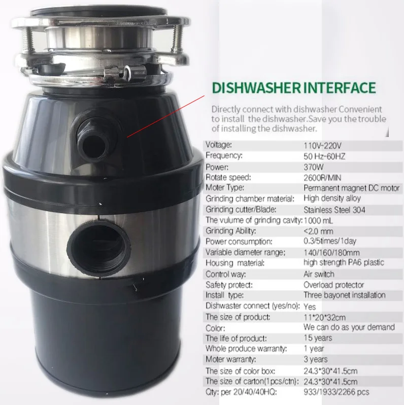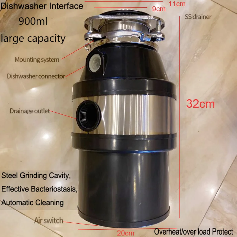 Спецификация: Номинальное напряжение: 220 В/110 В Номинальная частота: 50 Гц/60 Гц. Номинальная мощность: 370 Вт/560 Вт Скорость вращения: 2600 об/мин Материал: сплав высокой плотности/ПВХ/АБС Диаметр корпуса: 21 см Высота: 35 см Диаметр отверстия машины: 11 см Система установки: пряжка с тремя точками Вес брутто: 6,0 кг Цвет: красный/черный случайный доставка Особенности: 1. Специальная технология дробления молота из сплава, обычный мусорный бак, обработчик пищевых отходов на дробильном дисковом молотке из сплава, молотке, резке, разрыве и шлифовке, четыре движения дробленого мусора, мусорная банка в соответствии с прочностью, автоматически Отрегулируйте рабочее положение. В дополнение к металлу, камню, керамике, стеклу и другим твердым предметам некухонных отходов, общий мусор может быть обработан. 2. Шлифовальный круг, шлифовальный круг добавляет два армирующих ребра и арматурную ленту, улучшая износостойкость шлифовального диска, уникальная функция измельчения, так что все отходы для особой мелкости, пользователи никогда не беспокоятся о блокировке трубопровода! После измельчения, грубого и тонкого двух видов автоматического разделения мусора через отверстия фильтра, в суспензию тонких отходов, попадающих в жидкую трубу; грубые отходы остановятся, чтобы разбить на режущий диск, образуя порошок, с трубопроводом подачи воды. Один работает более десяти секунд. 3. Низкий уровень шума путем дробления шлифовального диска. Равновесная точка сплава, с хорошим балансом производительности и стабильности, низким уровнем шума двигателя, антивибрационной способностью. 4. Установите систему защиты от перегрузки двигателя, застрявший инородный корпус, система защиты начнет останавливать электропитание и не выгорать двигатель, если двигатель находится в состоянии защиты, необходимо удалить жесткий предмет, застрявший от мусорного процессора, И затем нажмите кнопку сброса спереди, может быть быстро и удобно! 5. Обработчик пищевых отходов принимает воздушный переключатель. Защита от утечки, повышает безопасность. 6. Простота установки: простой и удобный, благодаря установке визуального экрана, вид будет, 5 минут, чтобы получить, без профессионалов