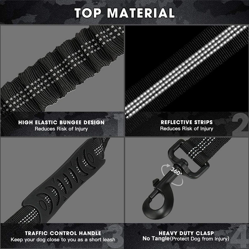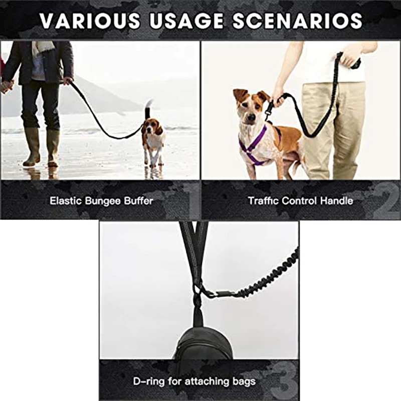 【 Эластичный банджи с защитой от растягивания 】:Этот эластичный собачий поводок отлично подходит для средних или больших собак, которые ходят, бегут или тренируются, и достаточно прочный, чтобы выдерживать тяговую силу больших пудов до 136 кг/300 фунтов. Эластичная и прочная конструкция поводка улучшает контроль и подушку, снижая риск травм и повышая комфорт.