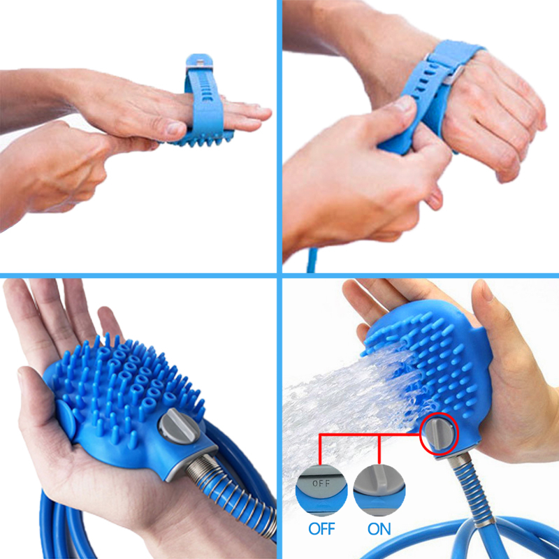Уникальная форма перчаток: приближается профессиональный опрыскиватель для душа с массажными перчатками. Тонкий и гибкий распылитель на ладони позволяет управлять вашей собакой обеими руками.