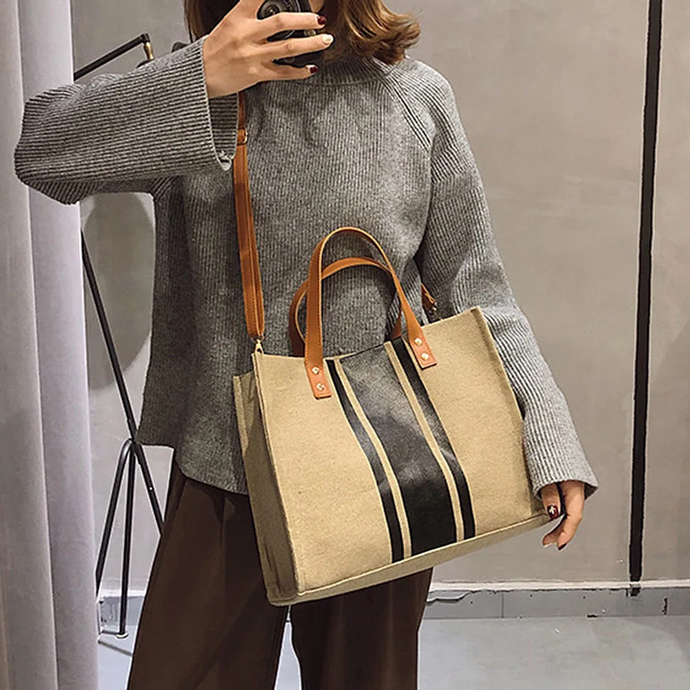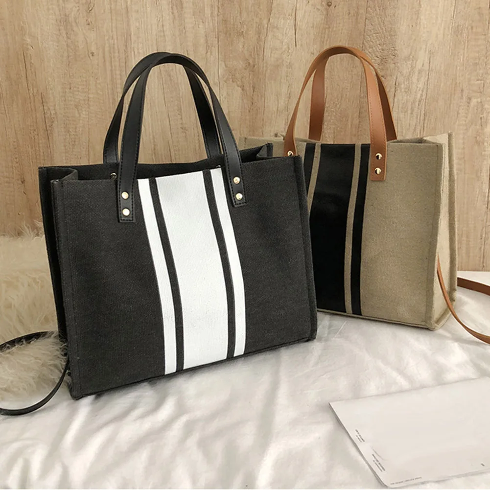 Женская Холщовая Сумка в полоску с цветными блоками, Большая вместительная сумка через плечо