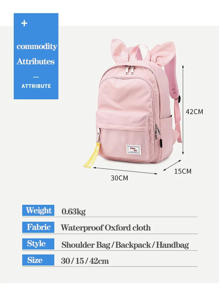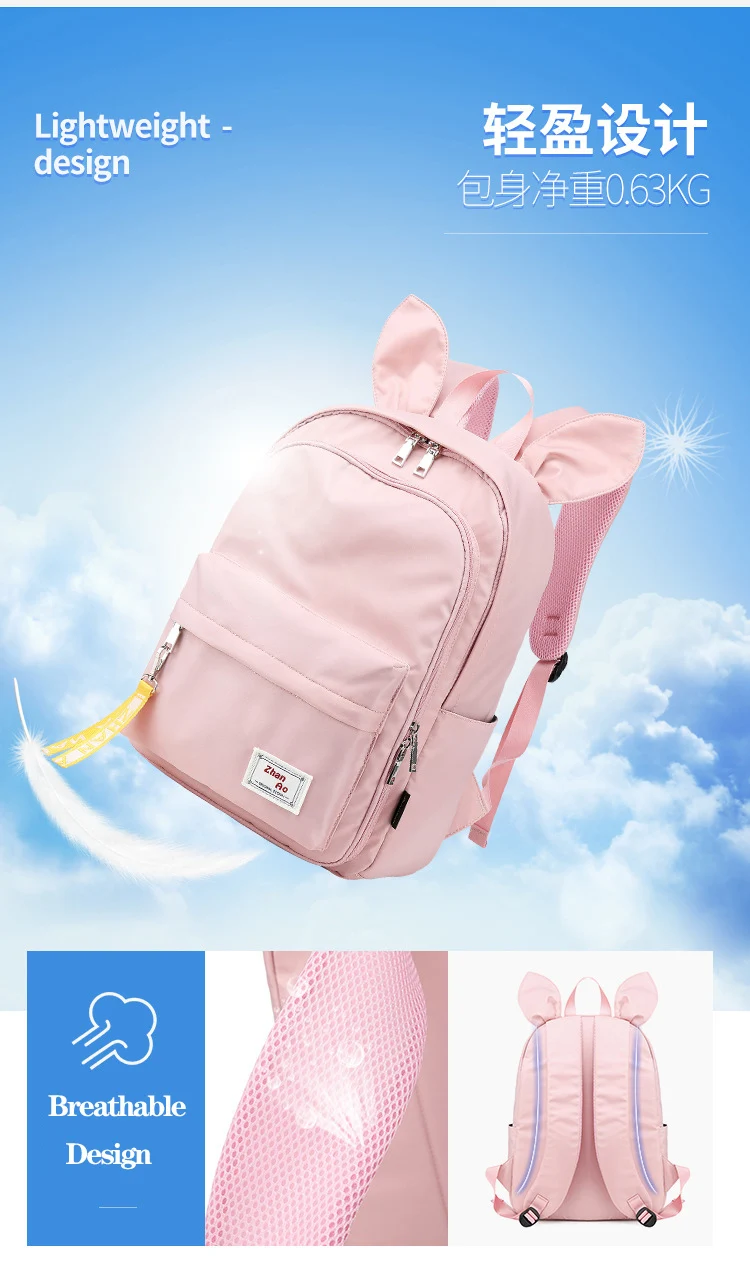 Новинка 2020, женские рюкзаки, модные, с милыми заячьими ушками, водонепроницаемые, нейлоновые, противоугонные, рюкзак, школьные сумки для девочек-подростков, школьный ранец
