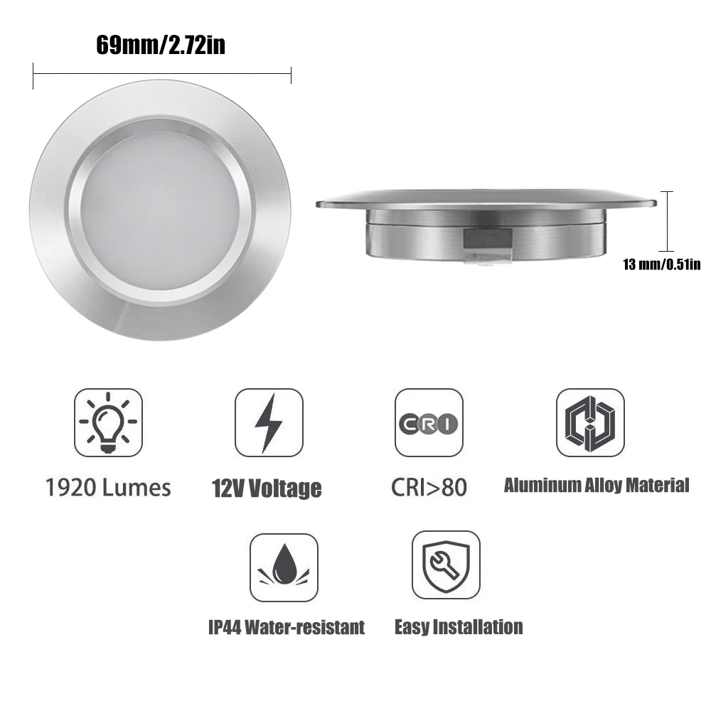 Этот светодиодный встраиваемый светильник изготовлен из высококачественного алюминиевого сплава, идеального рассеивания тепла, прочной структуры и прочной долговечности. Простота установки. Он может быть широко использован в автомобиле/RV/трейлере/кемпере/лодке и т. д. Также можно использовать в спальне, гостиной, кухне, гардеробе, шкафу, книжном шкафу, офисе и т. д.