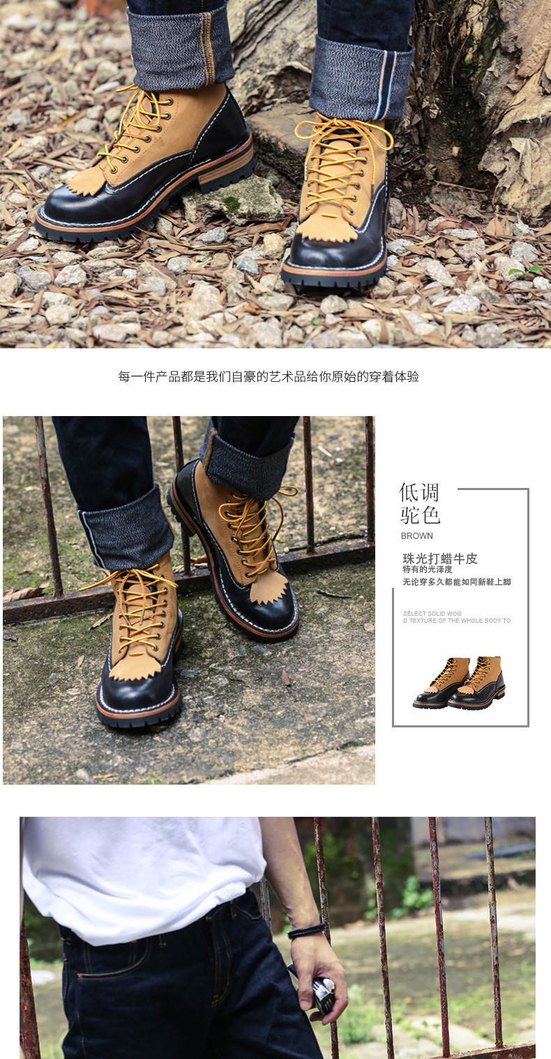 Натуральная коровья кожа Профессиональные завода Oem/odm услуга доступна Оптовая продажа/Прямая поставка приветствуется Доступны другие цвета на заказ Размер 46-49 изготавливается на заказ, требуется 7-10 дней Ручной работы, рабочая обувь, американские ботинки Кожа пришита по краям Из водонепроницаемого материала в итальянском стиле из натуральной яловой кожи Стальная подошва, формирующая среднюю подошву Ушко: вся медная фурнитура Стелька: воловьей кожи стелька SOle и пятки:Бычья кожа и Резина Шнурки для обуви: Прочные шнурки Каблук: кожа и Резиновый Каблук со Стальными Гвоздями Язык: цельный язык защищает от пыли и песка