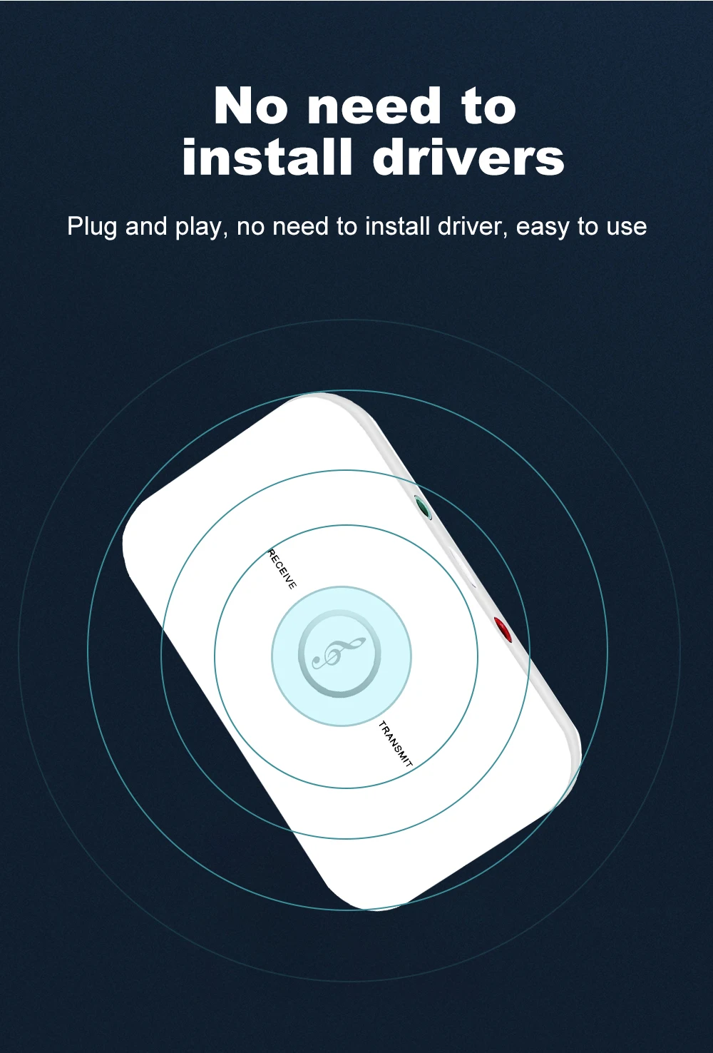 2. Режим приемника передатчика: 2в1 дизайн, с помощью этого беспроводного адаптера, вы можете отправлять и получать все аудио свободно и легко. Передатчик позволяет вашему телевизору, av-ресиверу, радио и другим домашним аудиоустройствам передавать музыку в bluetooth-наушники или колонки; приемник позволяет не использовать Bluetooth устройства, такие как домашний стерео или av-ресивер, и передавать музыку по беспроводной сети с вашего мобильного телефона/ПК.
