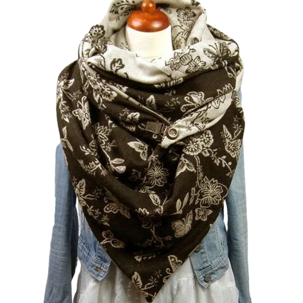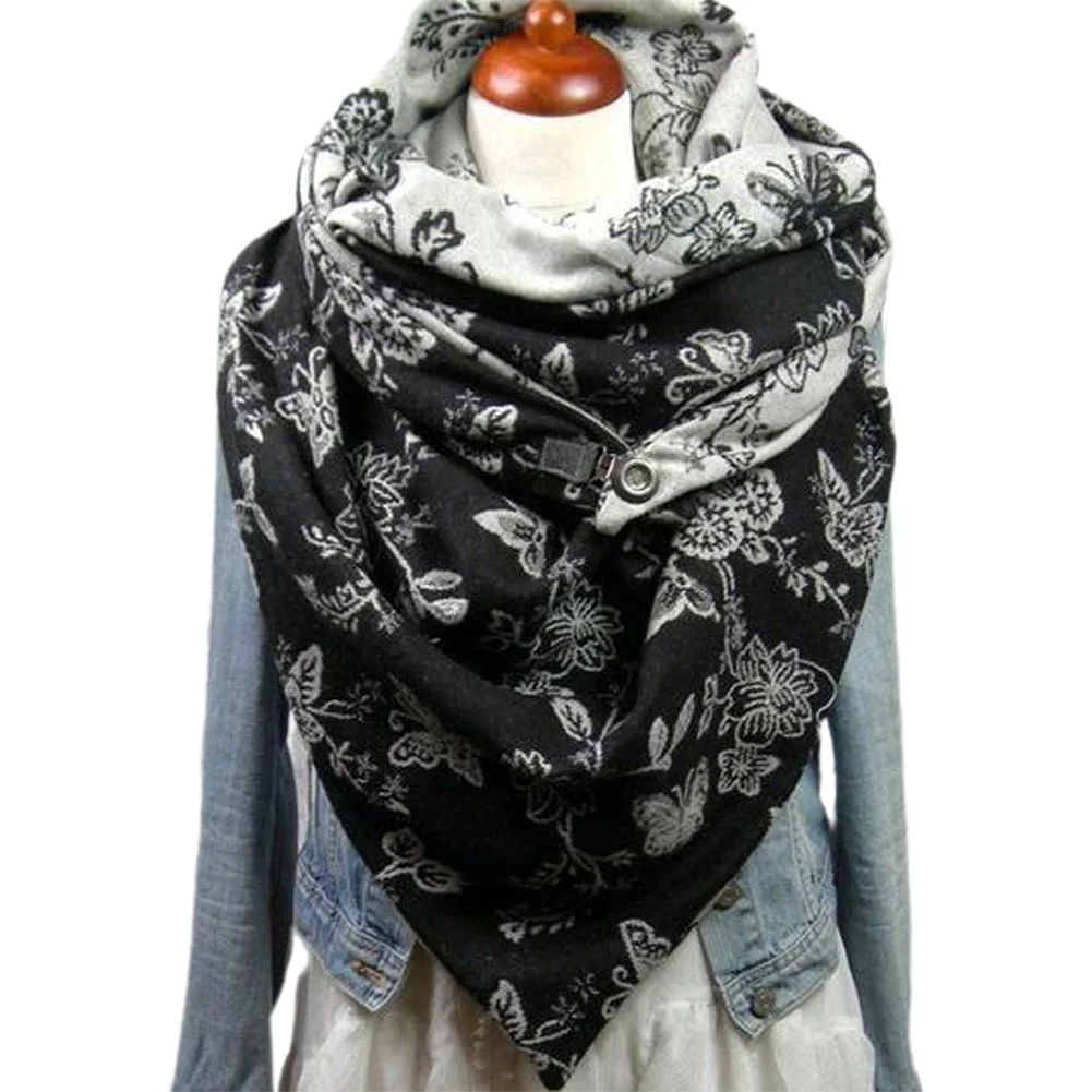 Женская зимняя теплая шаль-шарф на пуговицах с принтом в виде бабочек и звезд