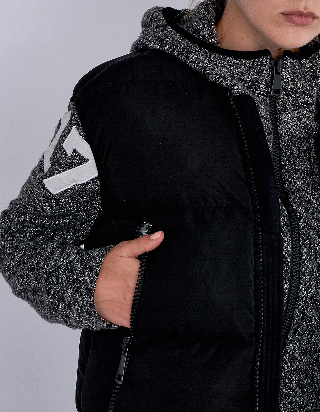 MEN Размер буквамиРазмер цифрамиРостОбхват грудиОбхват талииОбхват бедерДлина руки до запястьяДлина ноги по внутренней поверхностиXS44-46_170170-17688-9280965379S46-48_176176-18292-9684996082М48-50_176176-18296-100881026182M-Long48-50_182182-18896-100881026385L50-52_176176-182100-104921056182L-Long50-52_182182-188100-104921056385XL52-54_176176-182104-108961086181XL-Long52-54_182182-188104-1089610863842XL54-56_182182-188108-11210011164833XL58-60_188188-194116-12010811766864XL62-64_188188-194124-1281161236686WOMEN Размер буквамиРазмер цифрамиРостОбхват грудиОбхват талииОбхват бедерДлина руки до запястьяДлина ноги по внутренней поверхности3XS40_164162-16680598853772XS42_170168-17284639255802XS_L42_176173-1788463925984XS44_170168-1728867965780XS_L44_176173-1788867965984S46_170168-17292711005780S_L46_176173-17892711005984М48_176174-17896751046083L50-52_176176-182100-104831126283.5XL54-56_176176-182108-112901206283.52XL56-60_176170-176116-120981286083Жилет утепленный. Используется безподкладочная технология : два слоя ткани верха простеганы с утеплителем. Полочка с центральной застежкой на тесьму - молния. На полочке выполнены карманы с молнией.Трикотажный воротник из полотна ластик. На подкладке выполнены лямки для ношения на спине снятого жилета в помещении.