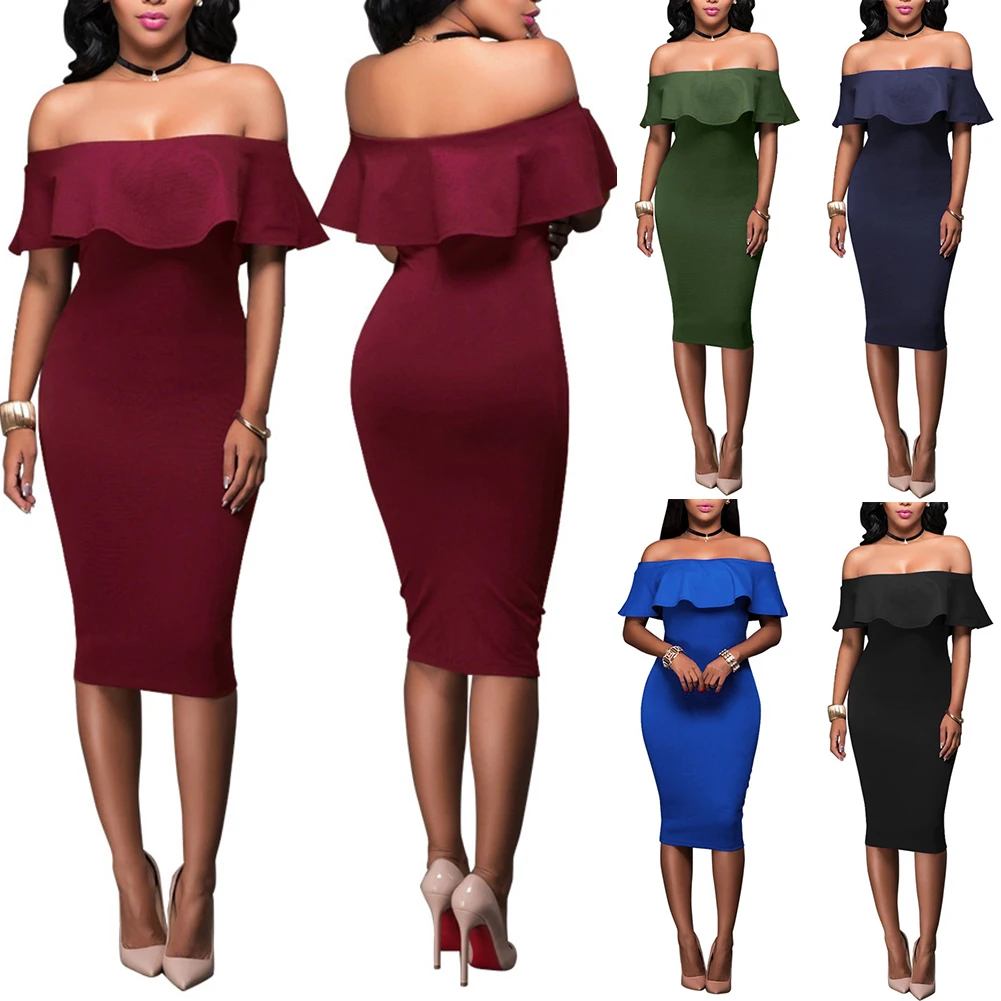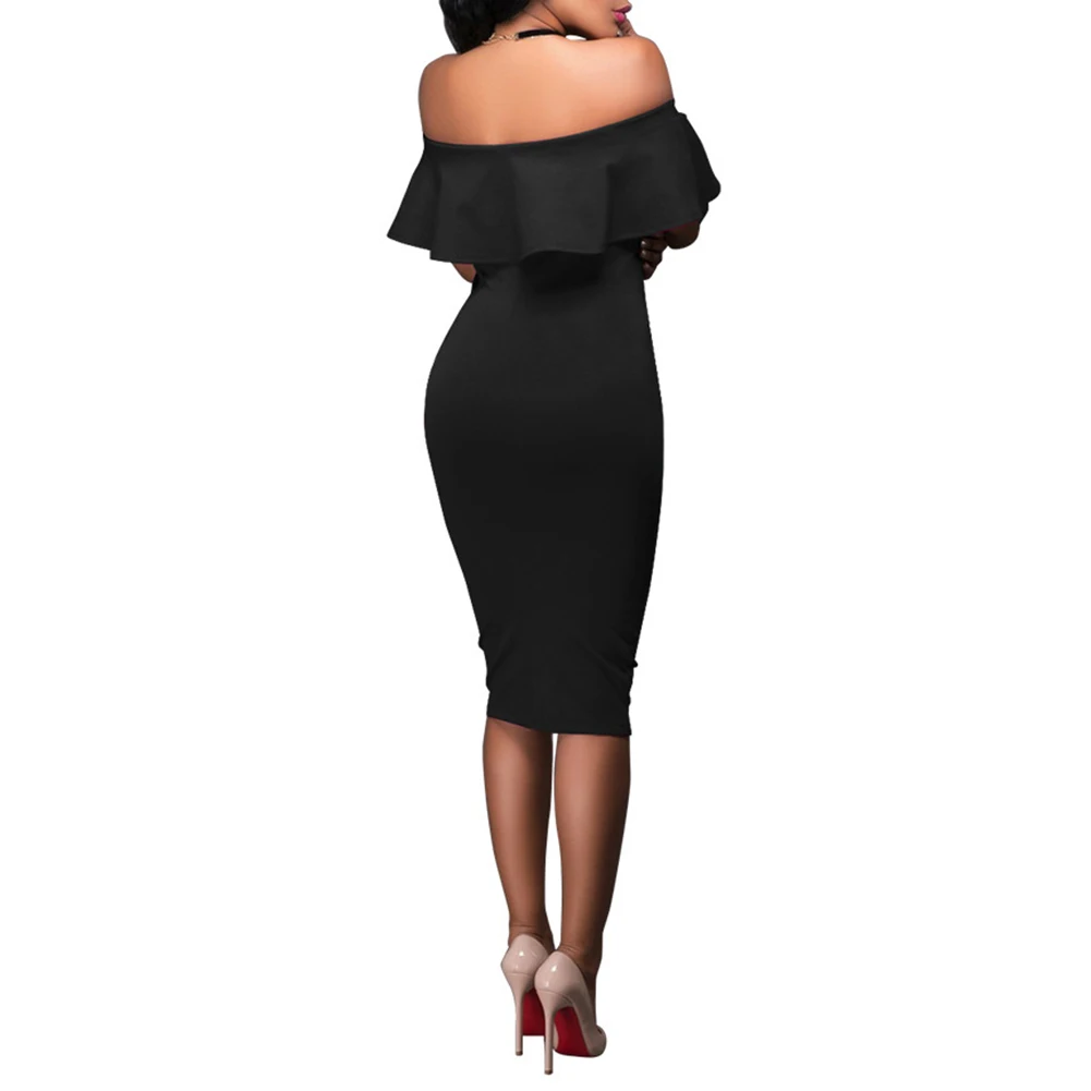 Модное летнее вечернее праздничное элегантное женское пикантное многослойное облегающее платье миди с открытой спиной, открытыми плечами и оборками