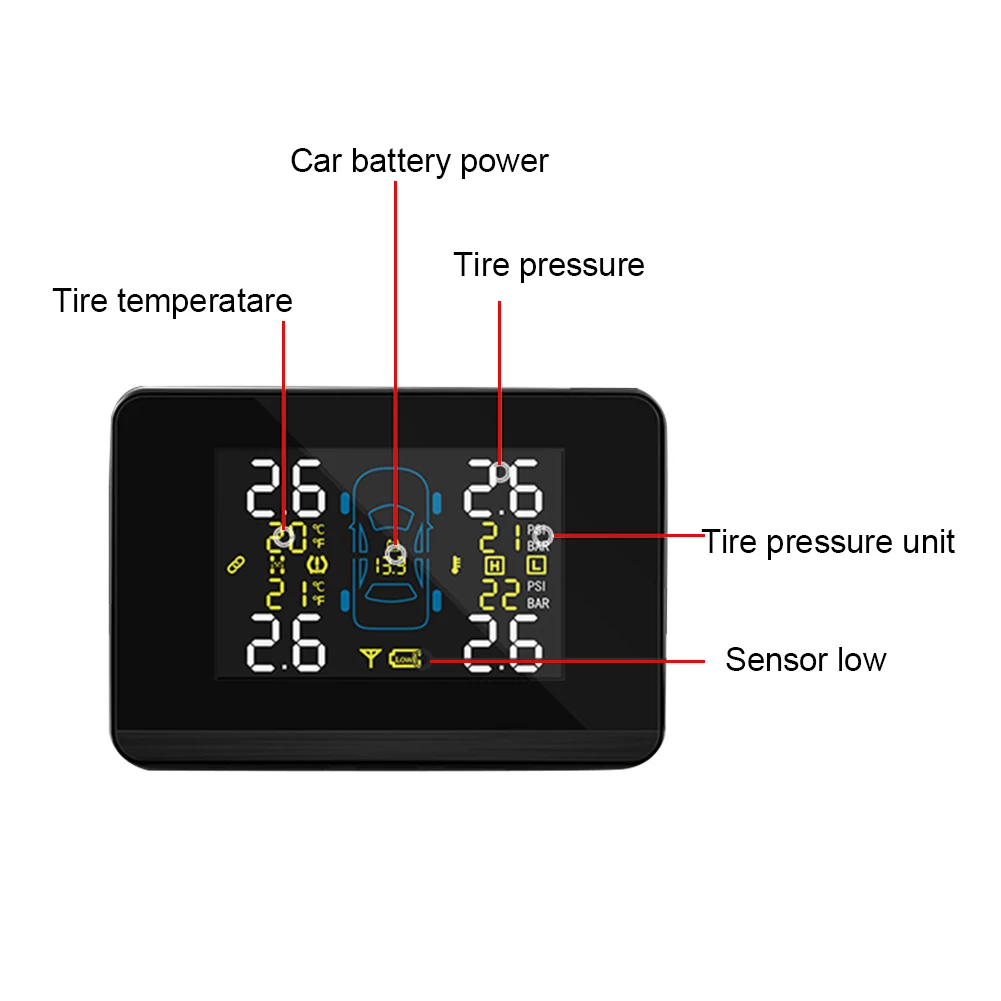 Благодаря технологии беспроводной радиочастоты эффективное расстояние передачи составляет более 80 метров. Датчик обновляет данные в режиме реального времени, а давление и температура в шинах являются ненормальными.