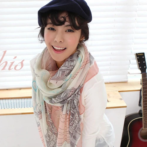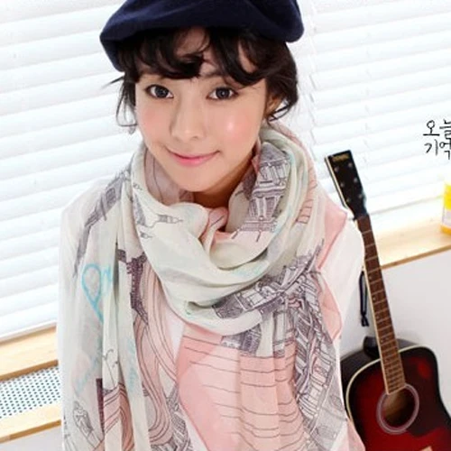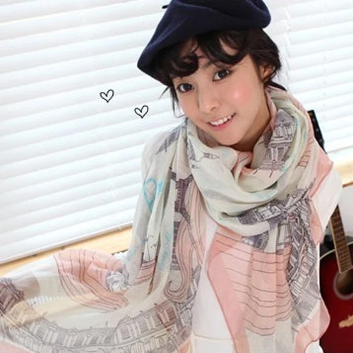 Этот женский длинный шарф изготовлен из мягкой и прозрачной вуали с принтом башни, который подарит вам ощущение комфорта и модный образ весной, осенью и зимой.