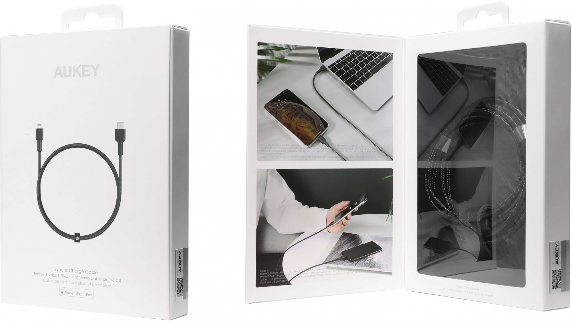 Cable for iPod, iPhone, iPad Aukey braided nylon cb-cl1 is a 1.2-meter adapter cable with USB Type C and Lightning connectors. It allows you to synchronize devices with compatible interfaces and charge various mobile gadgets from the Shu, Azu or any other energy source. The cable has MFi certification and allows you to transfer data at high speed between two devices.