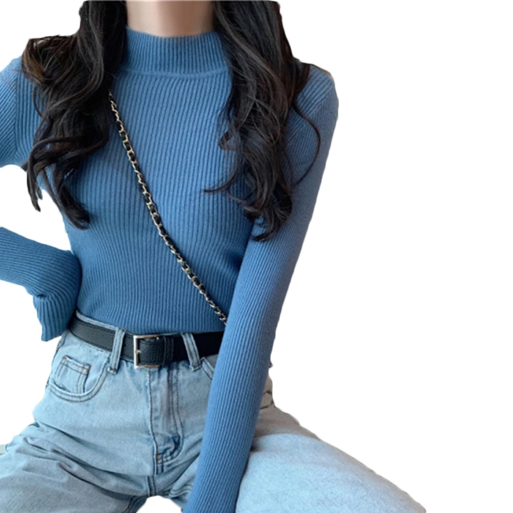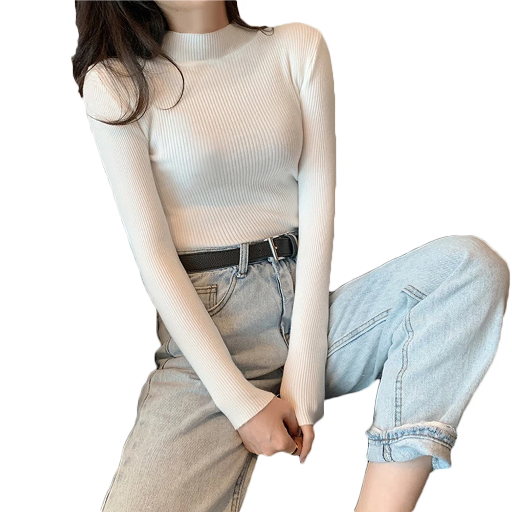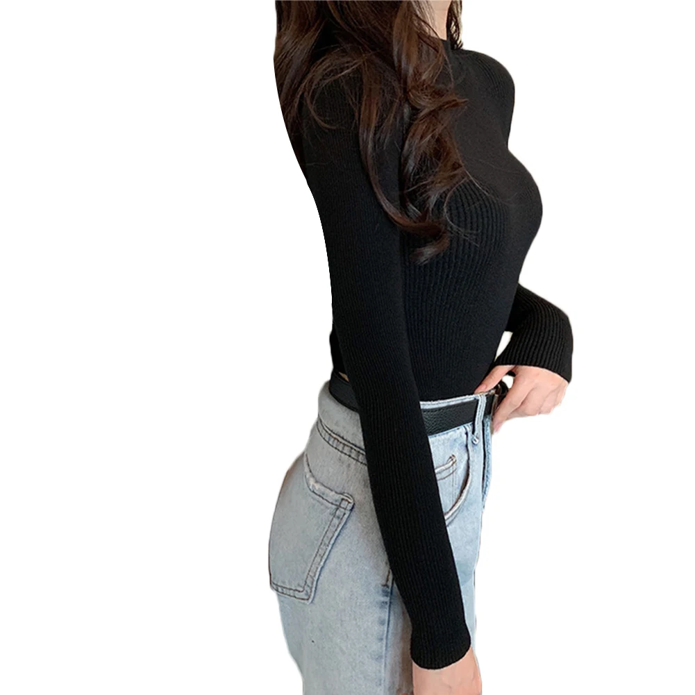 Женская однотонная трикотажная блузка с длинным рукавом и воротником-стойкой