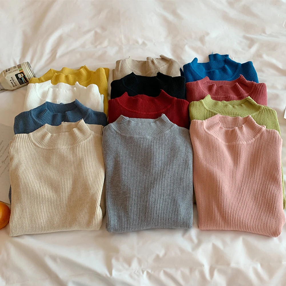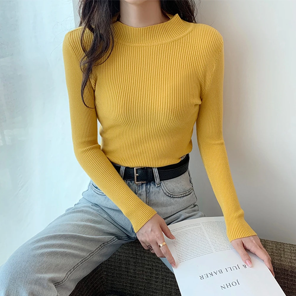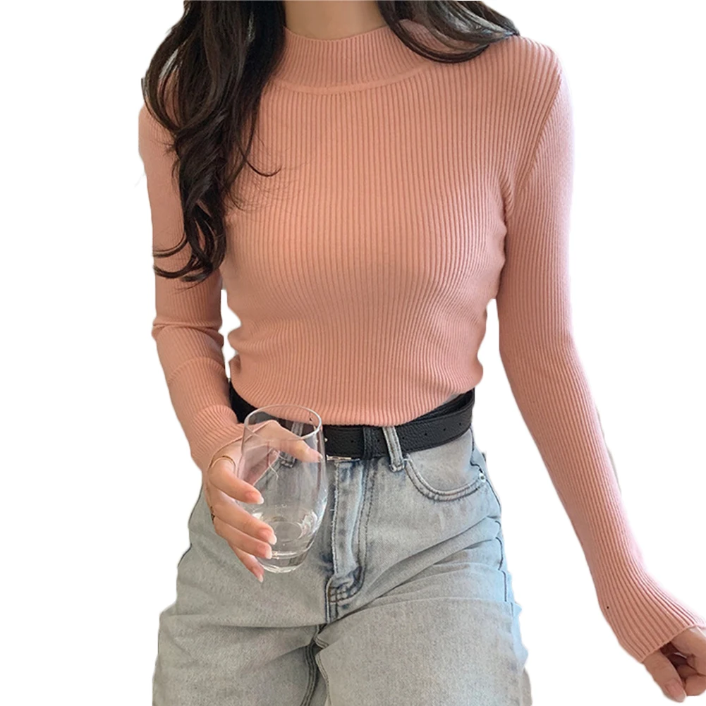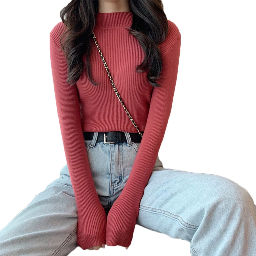 Женская однотонная трикотажная блузка с длинным рукавом и воротником-стойкой