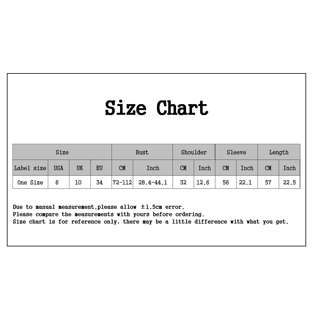 [Наш один размер] Бюст: 72-112 см/28,4-44,1 дюйма, Плечи: 32 см/12,6 дюйма, рукав: 56 см/22,1 дюйма, длина: 57 см/22,5 дюйма (прибл.)