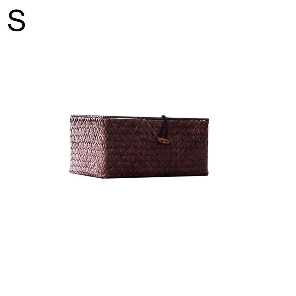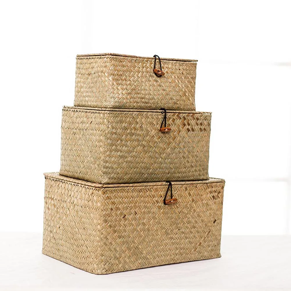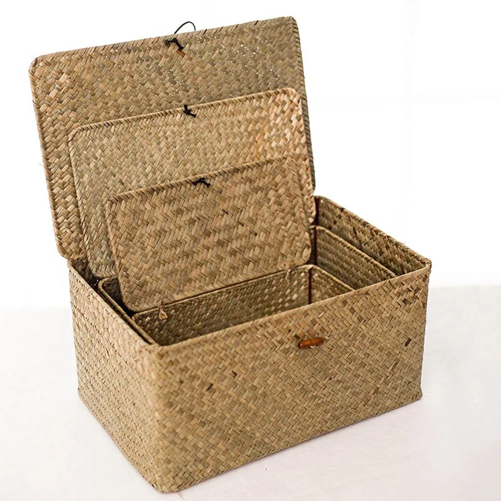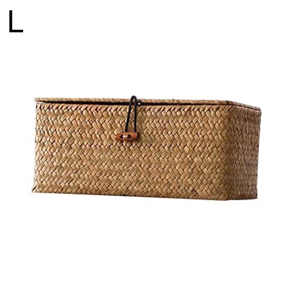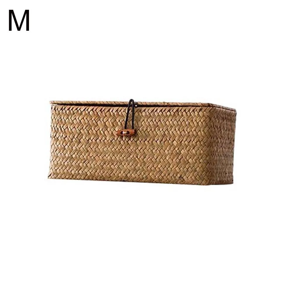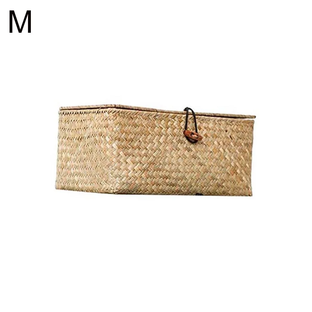 Ретро ручная работа, соломенная тканая коробка для хранения косметики, игрушки, держатель для одежды, корзина с крышкой, домашняя коробка для разного макияжа, органайзер из ротанга