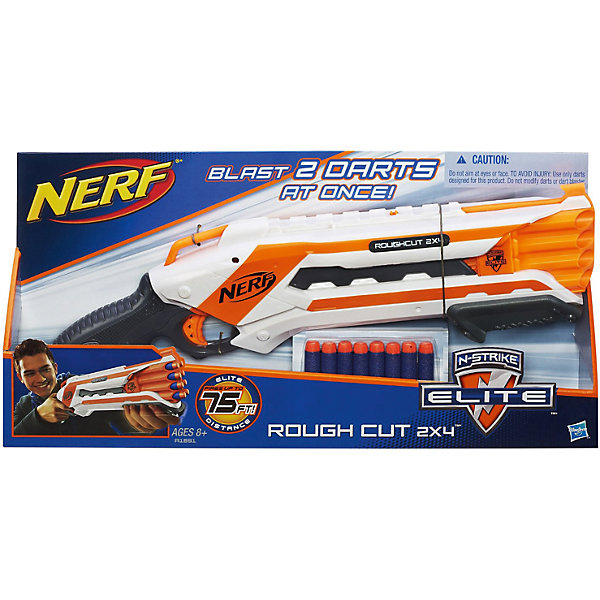 Бластер окрашен в бело-оранжевые цвета и изготовлен из качественного и безопасного пластика. Заряжается восьмью стрелами с безопасными наконечниками, которые защитят от травм при игре. Может стрелять одной или сразу двумя стрелами. Удобная рукоятка и курок.