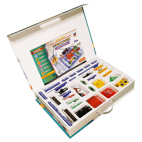 Электронный конструктор Znatok «Супер-измеритель» знакомит ребенка с миром электроники. Из деталей собираются несколько моделей, которыми можно измерить: температуру от -55 до +25 градусов, расстояние от 3 см до 3 м, яркость света, уровень шума и другие параметры.
