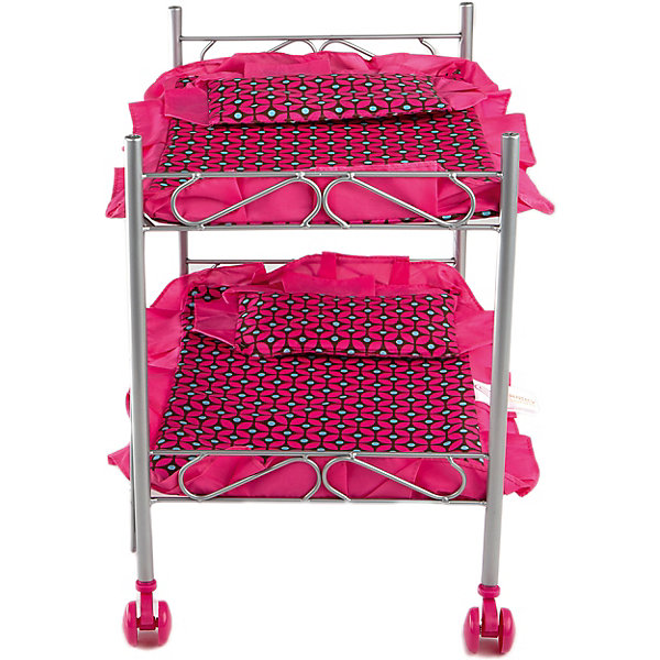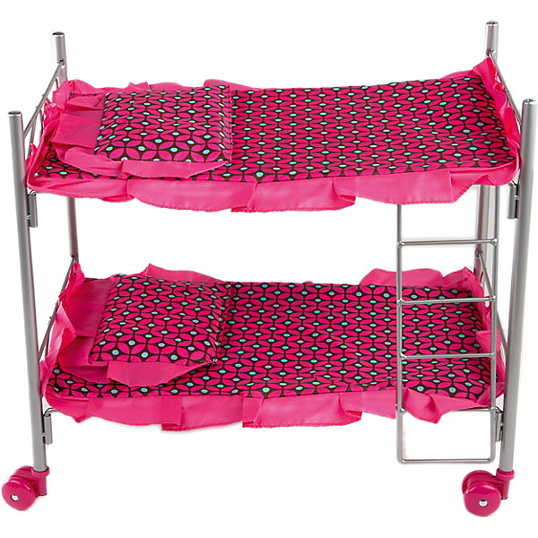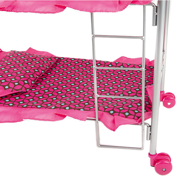 Двухэтажная кроватка сделана из облегченных, прочных материалов. Она функциональна и легко передвигается за счет поворотных колес. Игрушка с надежной конструкцией очень устойчива. В нее помещается сразу две куклы. Ткань хорошо моется от загрязнений. Яркий дизайн подойдет для любой детской комнаты.