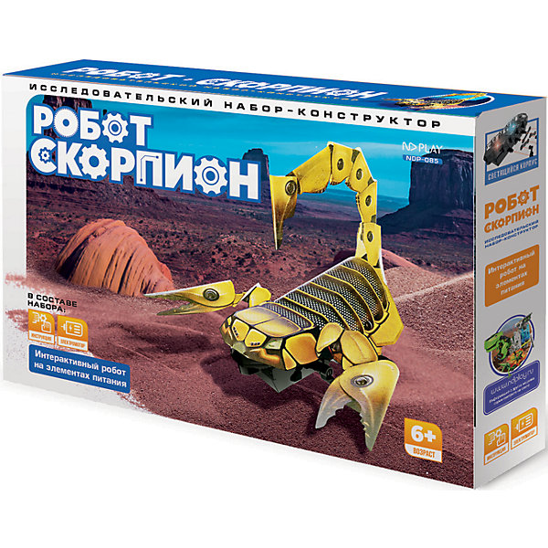 С помощью данного набора можно собрать интерактивного робота на элементах питания. Робот-скорпион – копия желтого скорпиона, также называемого смертельный охотник, беспозвоночное животное из отряда членистоногих из класса паукообразных. Для защиты от врагов и охоты они применяют мощный коктейль из нейротоксинов. Для детей, а также людей с ослабленным здоровьем и заболеваниями сердца укус желтого скорпиона является смертельным.