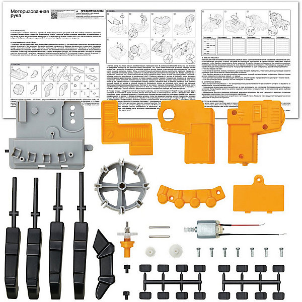 • в комплекте: база, большой палец, 2 пальца с треугольной меткой, два пальца с квадратной меткой, крышка скоб, сцепная ось, мотор, крышка батарейного отсека, барабан, подставка для барабана, левая и правая крышка коробки передач, набор малых шестерёнок, 2 крышки разъёмов, винты, большой набор шестерёнок, 2 оси, 16 штифтов, иллюстрированная инструкция