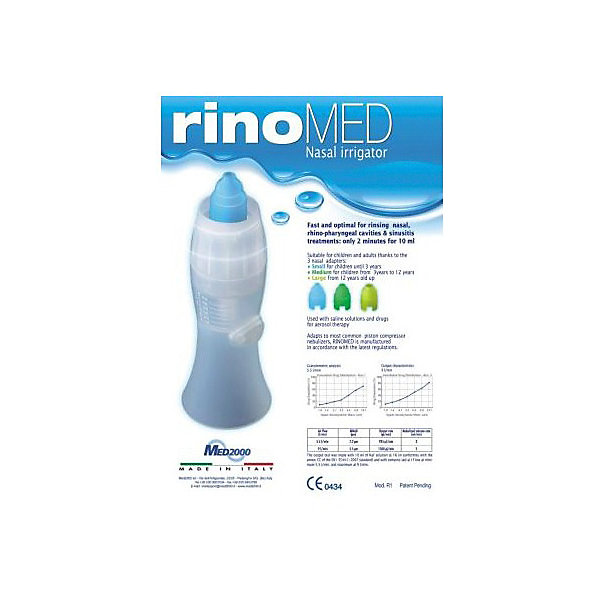Ирригатор эффективно очищает носовой проход, доставляя в него лекарство. Десять миллилитров раствора распыляются примерно 2 минуты. Прибор подходит для использования в любом возрасте. Совместим со всеми компрессорными ингаляторами.