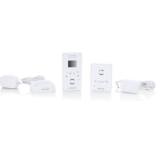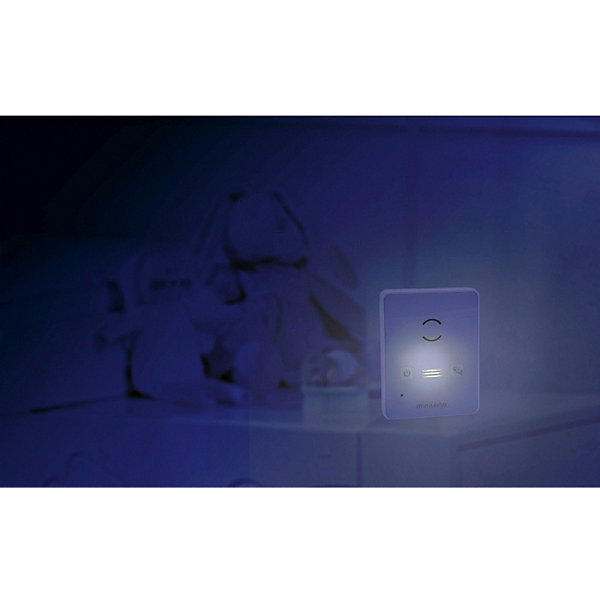 С двусторонней радионяней удобно отслеживать изменения в комнате малыша. Если ребенок проснулся, можно включить любую из пяти колыбельных на детском блоке или успокоить его голосом. Также на приборе есть ночник с мягким светом. Управление осуществляется дистанционно. Имеется вибросигнал. Радионяня сообщит родителю об изменении температуры в детской. Прибор активируется при детском плаче, чувствительность восприятия можно настроить.
