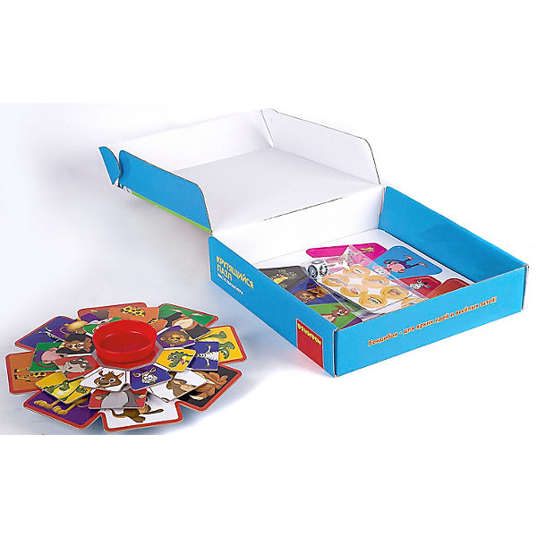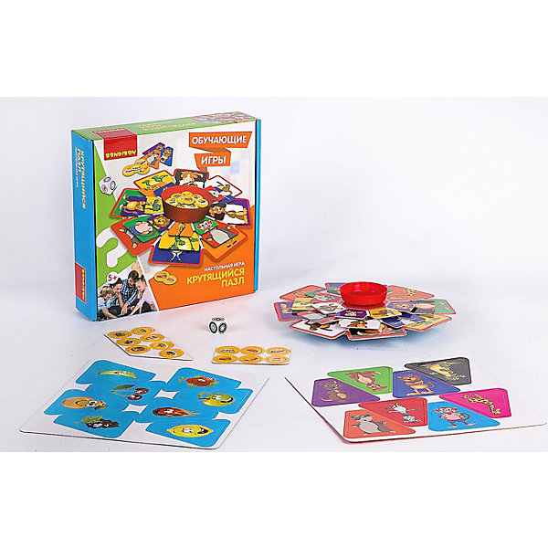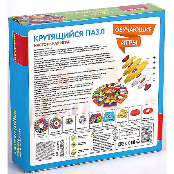 Настольная игра "Крутящийся пазл" от компании Bondibon позволяет организовать веселый и увлекательный досуг в кругу друзей. Игрокам предстоит испытать удачу и сформировать изображение забавной зверюшки. Участник игры, которому удастся это сделать, забирает себе одну карточку с изображением еды. Победителем становится игрок, получивший три такие карточки. Обучающая игра познакомит детей с представителями животного мира и разовьет зрительное восприятие.