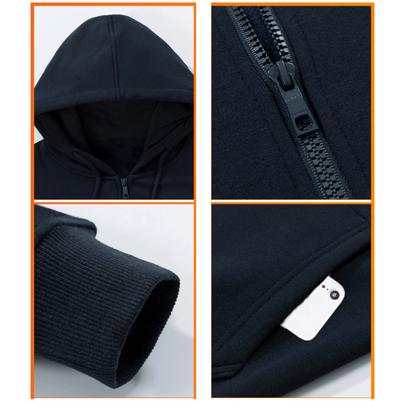 Мужская осенне-зимняя толстовка с капюшоном и длинными рукавами, теплое пальто с карманами и плюшевой подкладкой