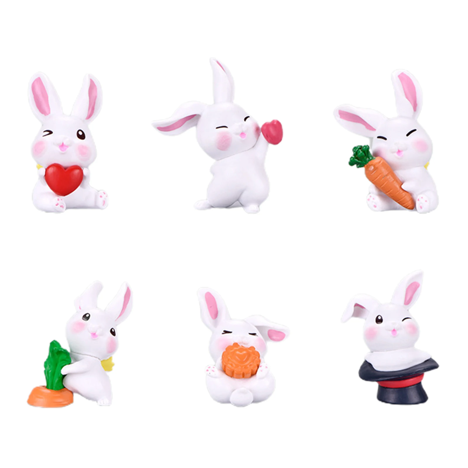 6 шт., мини-фигурка с милым мультяшным Кроликом, декор для сада и дома