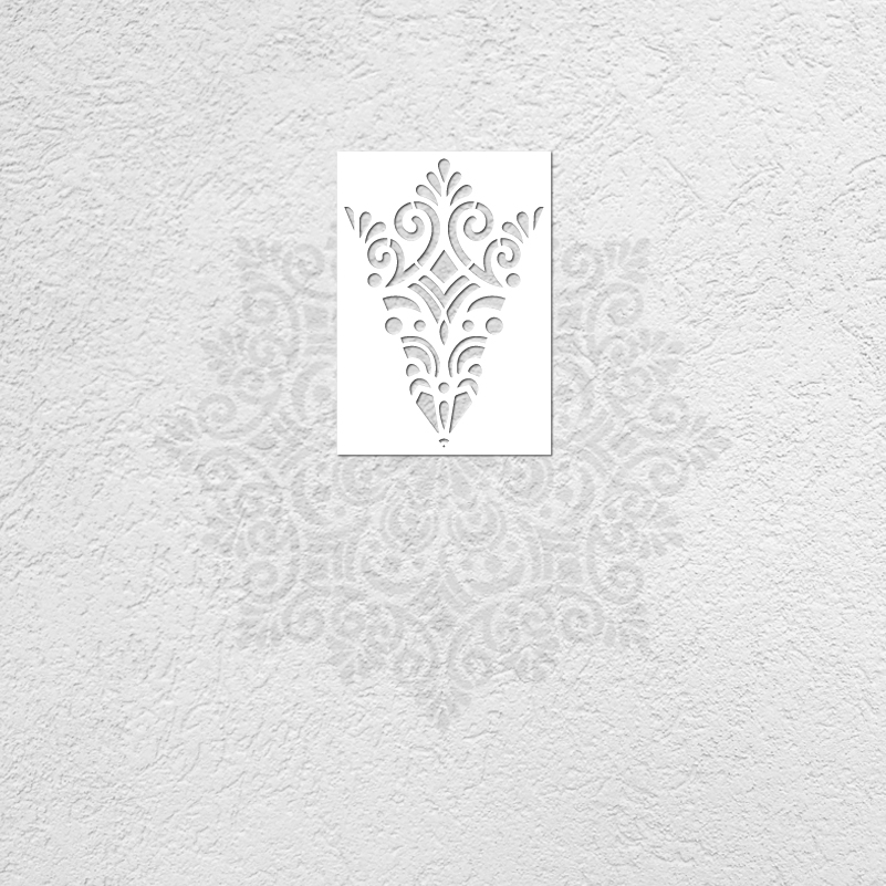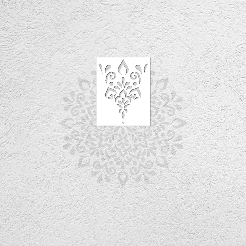 ПРИМЕЧАНИЕ. Высота трафарета будет соответствовать радиусу мандалы, например, многократно вращая трафарет «25 см х 70 см», вы получите мандалу «140 см х 140 см».