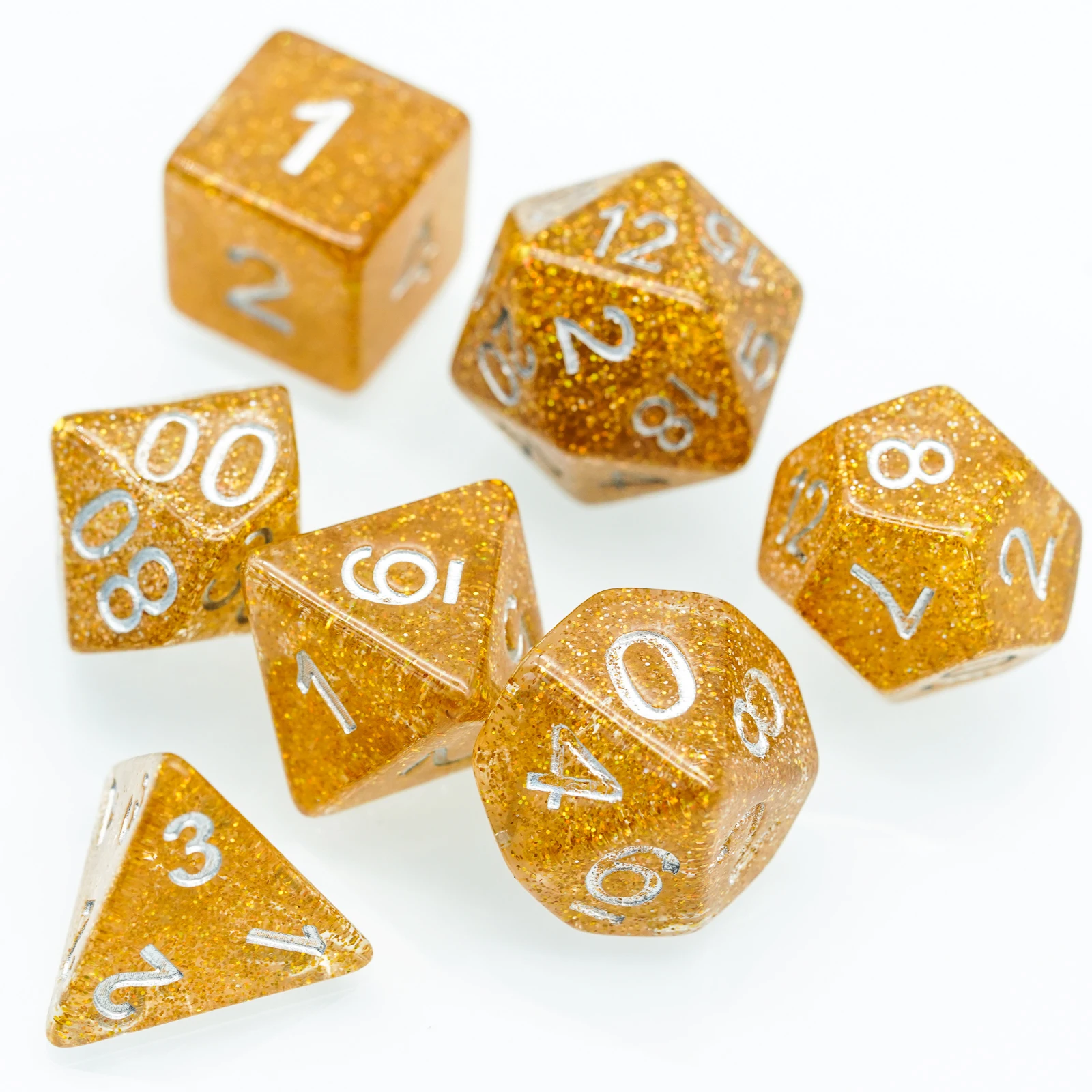 Набор 7-Die игральные кости DND содержит 1 кубик D4, 1 кубик D6, 1 кубик D8, 2 кубика D10 (0-9 и 00-90), 1 кубик D12, 1 кубик D20, а также мешочек для игральных костей.