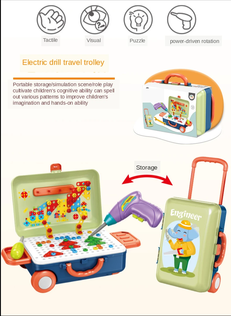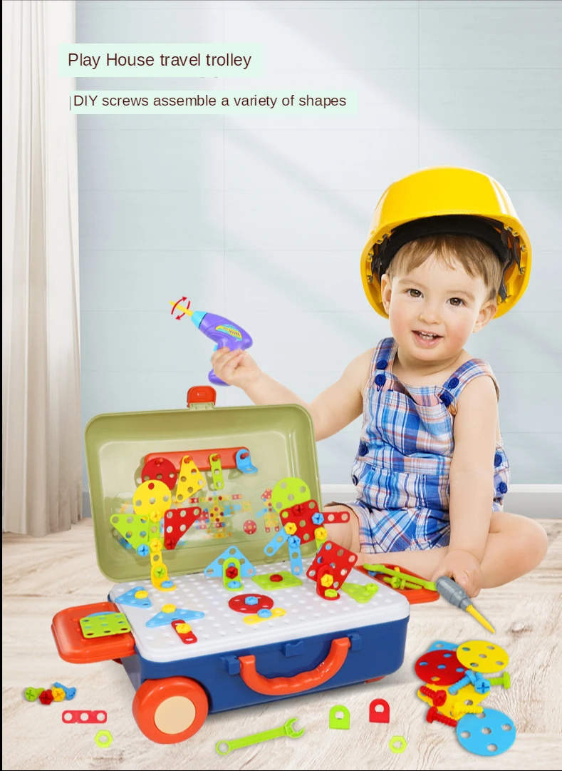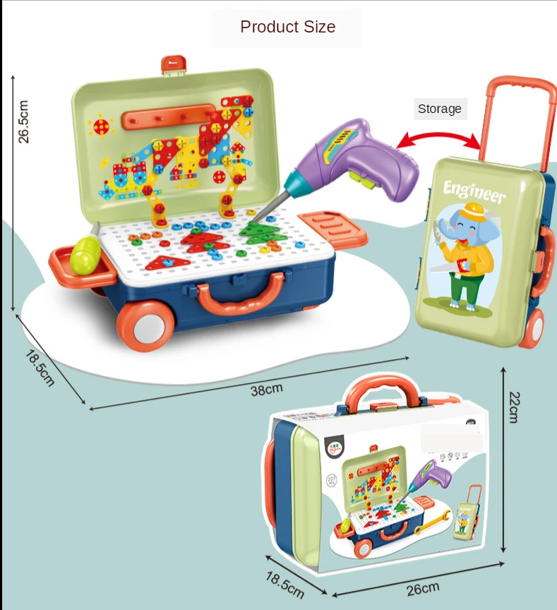 Материал: пластик Посылка включает в себя электрическую отвертку и ручную отвертку и другие аксессуары, как показано ниже. Pegboard Размер: 38*18,5*26,5 см Подходит для детей от 3 до 6 лет. Дети могут сверлить красочные винты в доску, чтобы сделать тонны крутых дизайнов. Этот пакет с большим значением поставляется с достаточным количеством штук и в достаточном количестве цветов, поэтому ваш ребенок будет развлекаться в течение длительного времени. Они полюбят играть с различными цветными фигурами и создавать свой собственный дизайн!