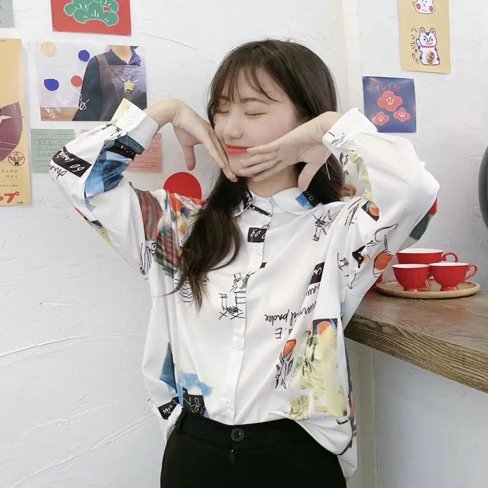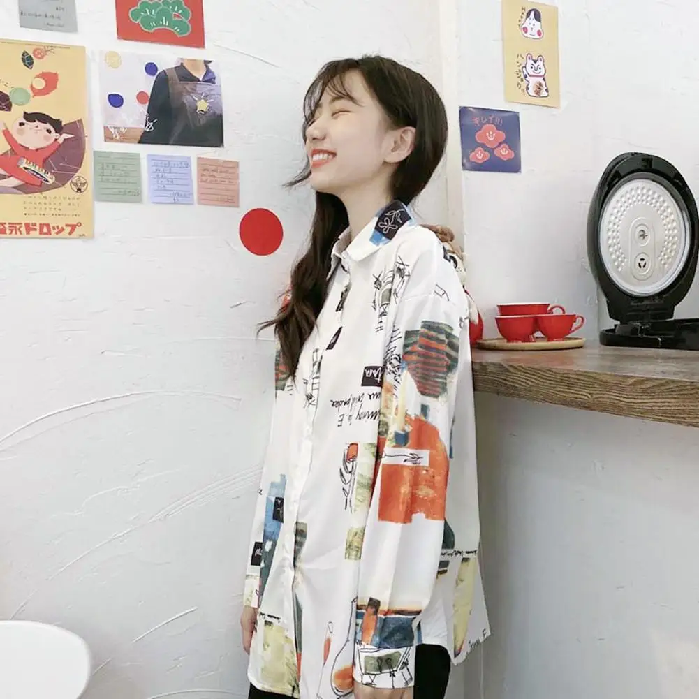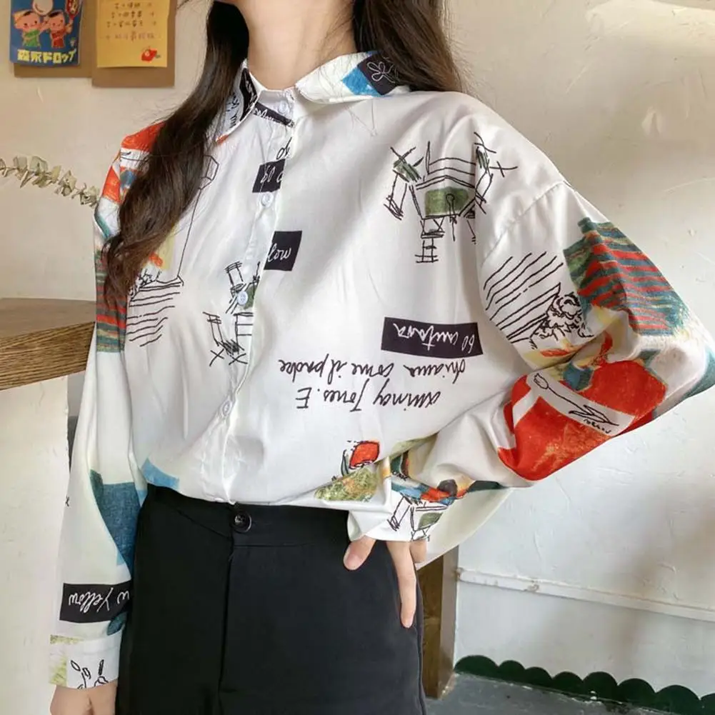 Женская однобортная Свободная рубашка с длинным рукавом и надписью