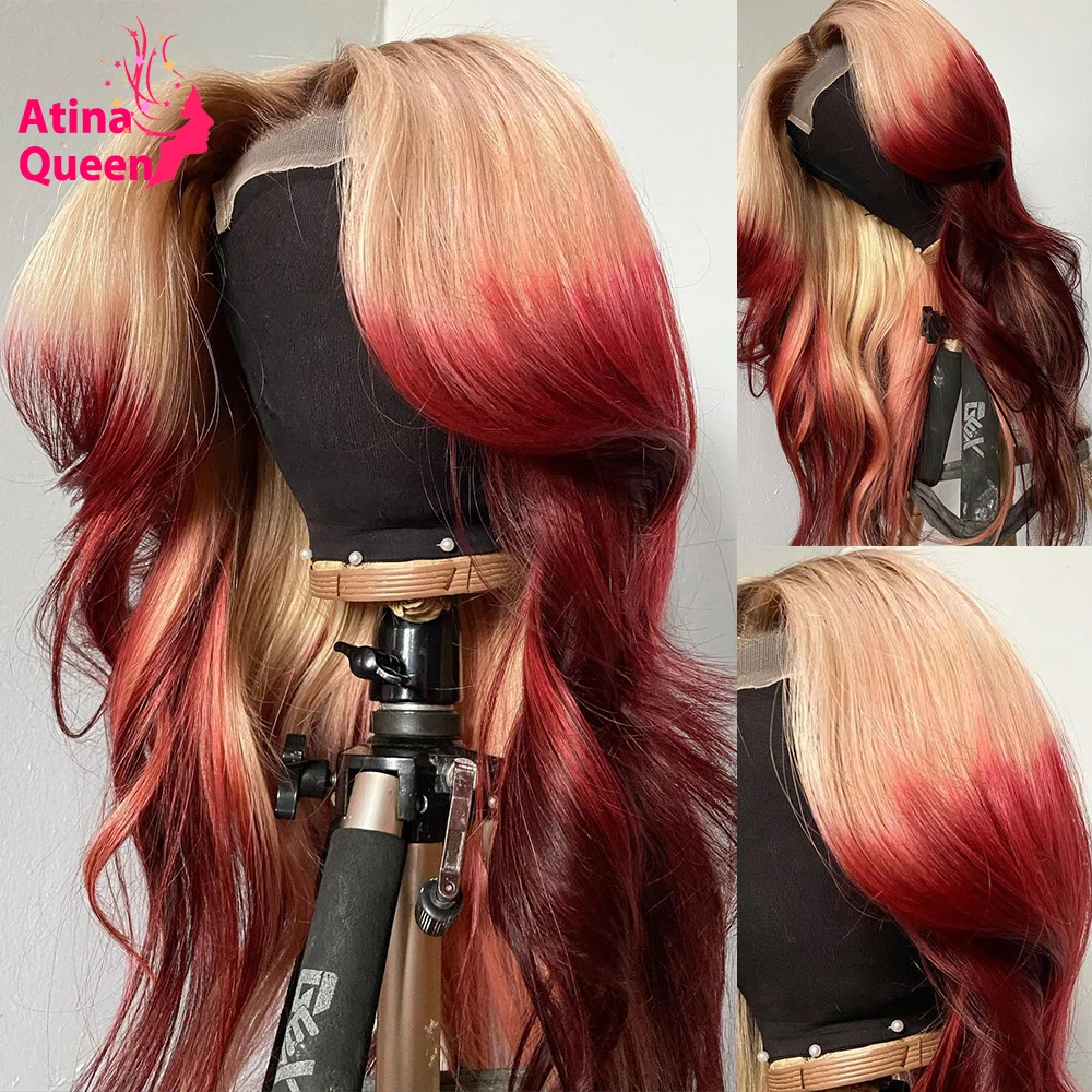 Цветной 99j бордовый красный парик Омбре 613 кружевной передний парик человеческих волос объемная волна блонд HD кружевные передние al парики Remy Perruque предварительно выщипанные