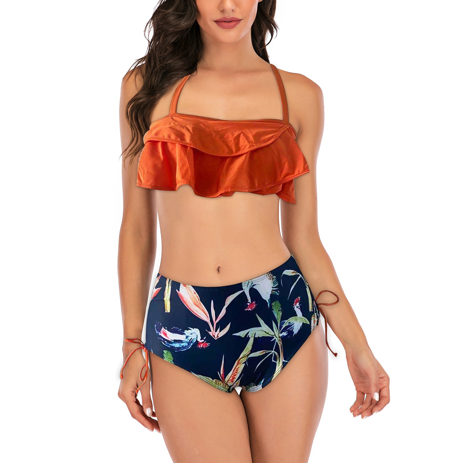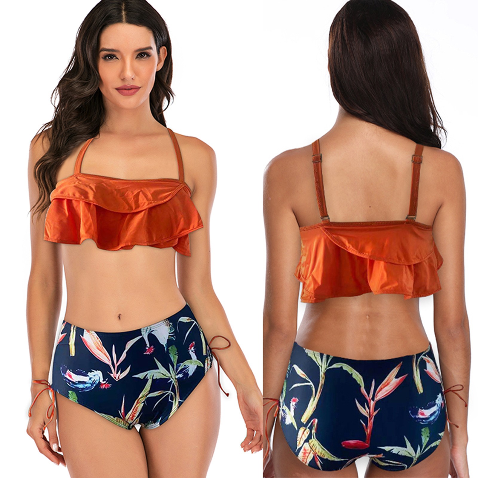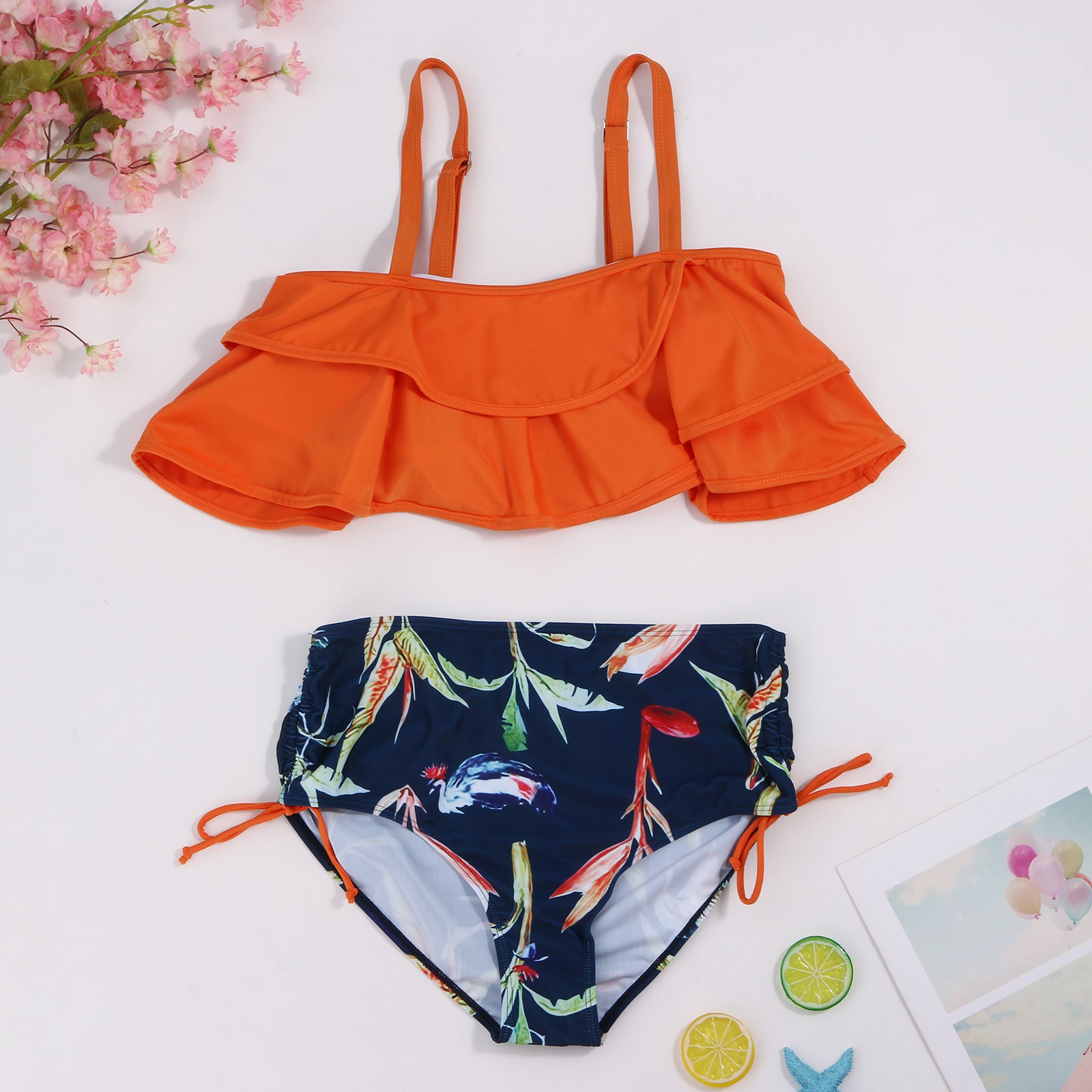 Летний купальник для женщин с оборками, бикини, топы, модный принт, Maillot De Bain, 2 предмета, Femme, пляжный стиль, сексуальный купальник, шорты, бикини, набор P